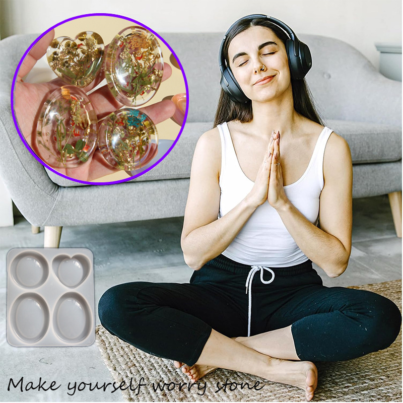 Thumb Worry Stone滴胶模具镜面疗愈解压石瑜伽石硅胶树脂液模子