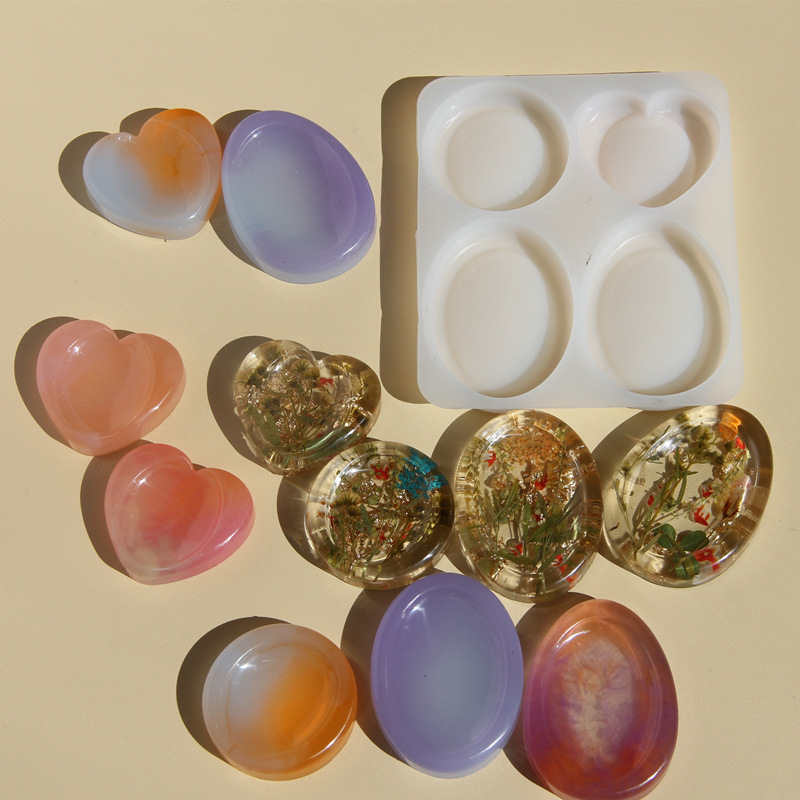 时光宝石吊坠滴胶模具创意爱心椭圆月牙圆形吊坠树脂液硅胶模具