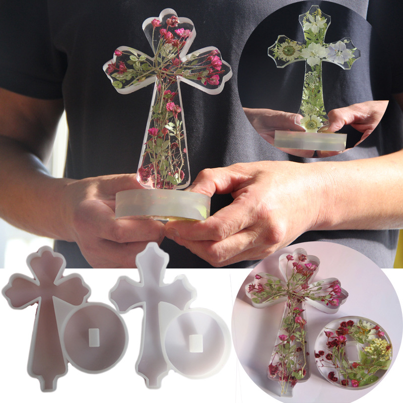 新しいクロスオーナメント接着剤モールドクリエイティブ大型分割クロスベースオーナメントアロマセラピーシリコンモールド