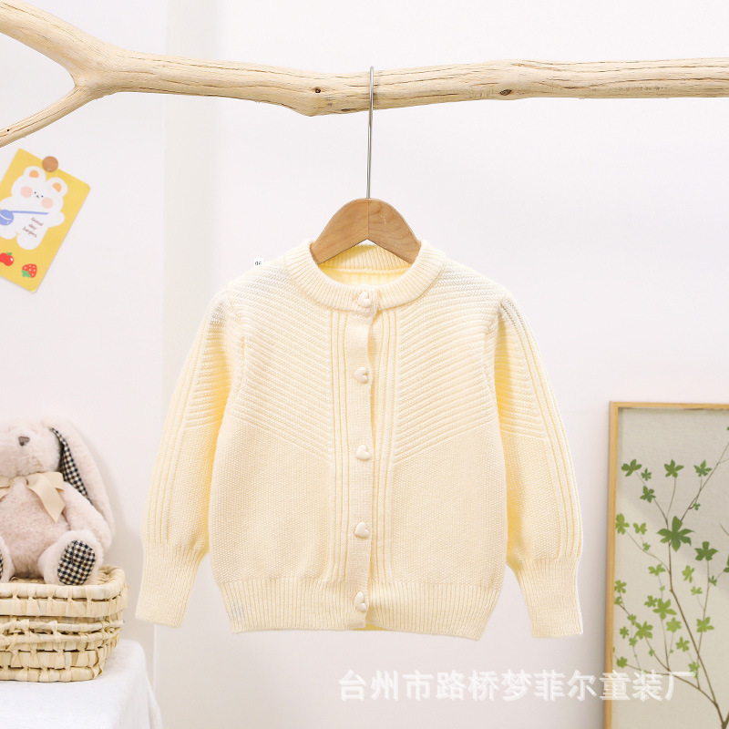 女の子用セーターカーディガン、子供用ニットウェア、幼児用春秋コート、オープンボタン、ラウンドネック、長袖