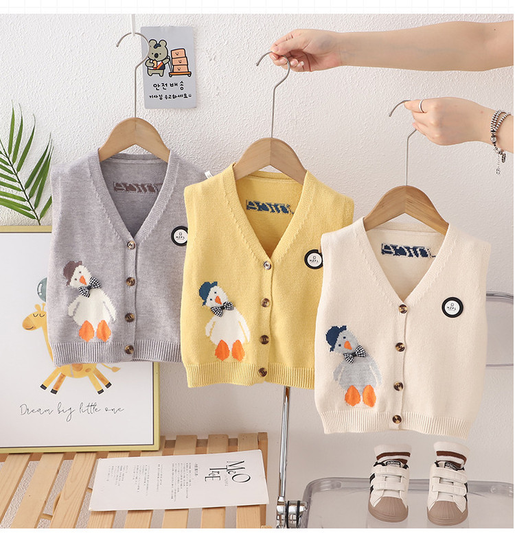 子供の馬甲の男女の赤ちゃんの春と秋のニットベストの子供の乳幼児の0-5歳の肩のセーターの中で漫画を着ます。