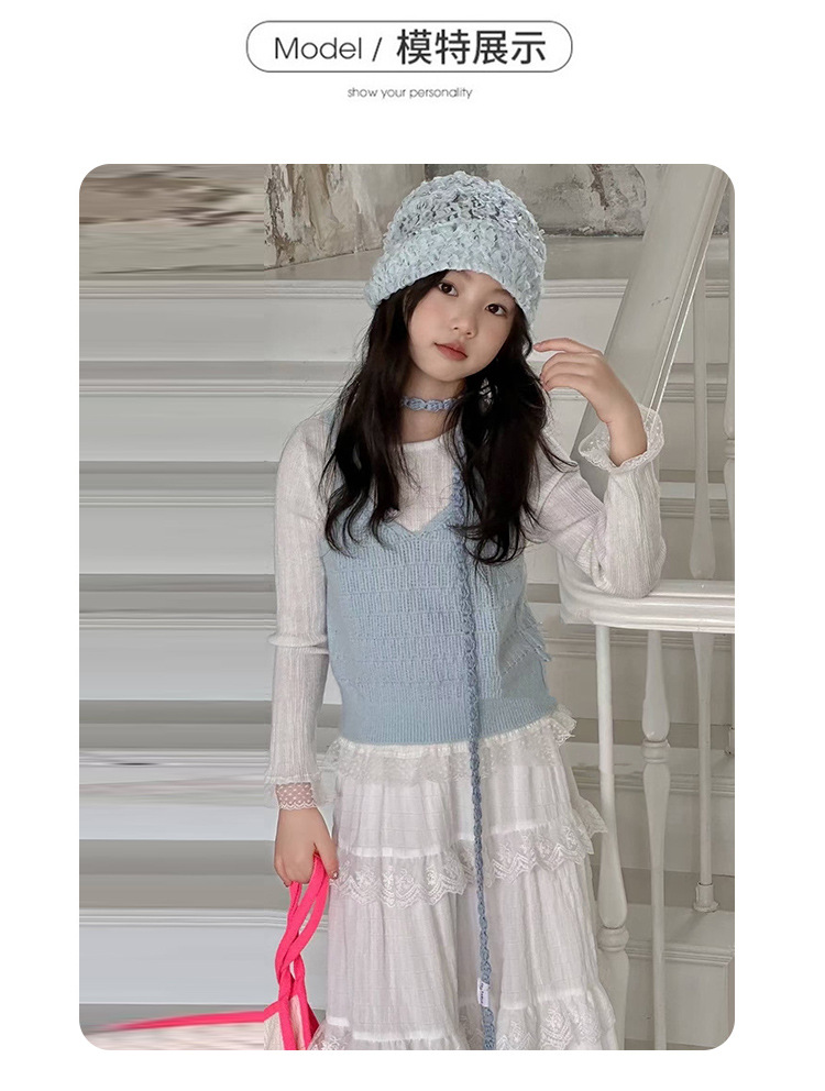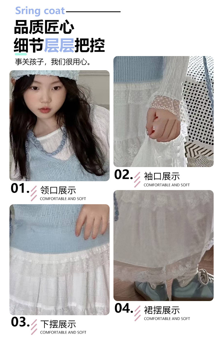 女童春秋花边毛衣套装2025新款韩版中大童时尚设计宽松针织两件套