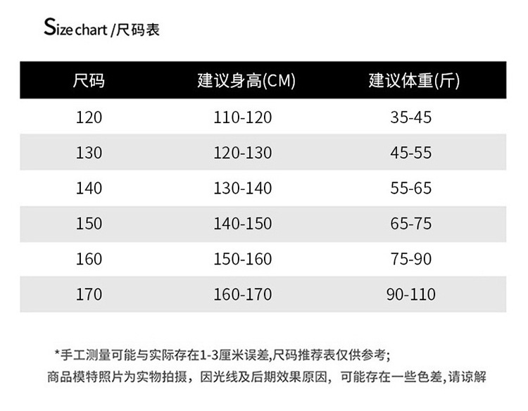适合身高 120cm,130cm,140cm,150cm,160cm,170cm