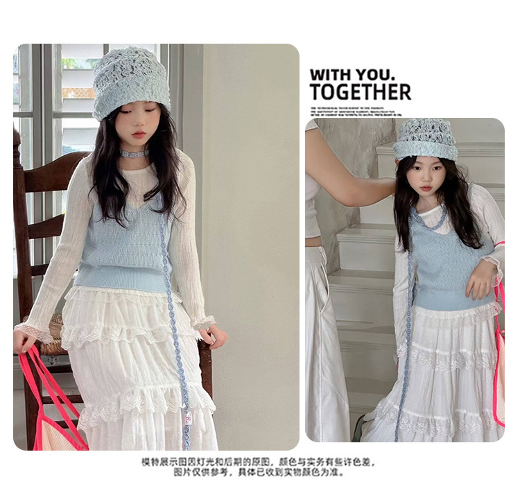 女童2025秋上新毛衣马甲长袖T恤半身裙套装中大童春秋韩版打底衫