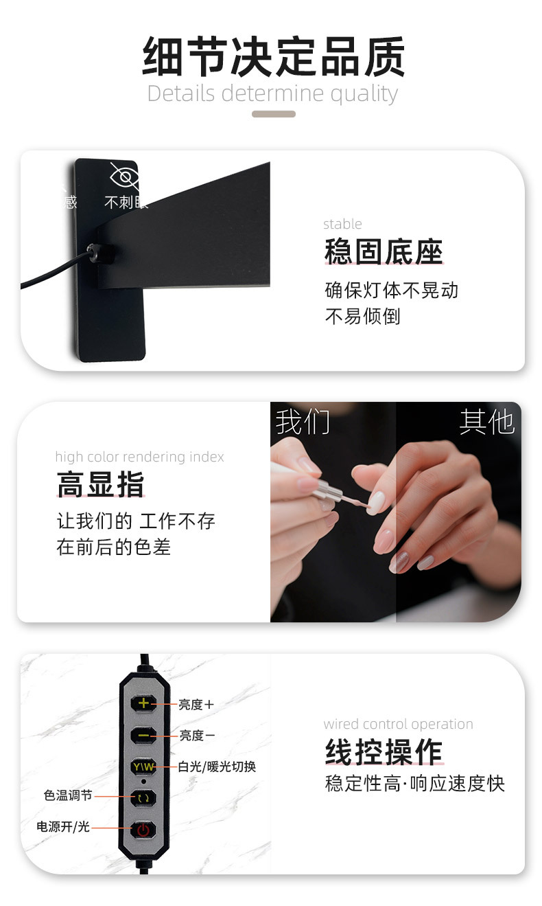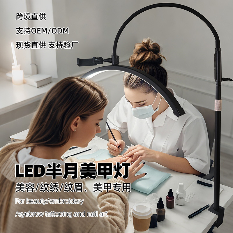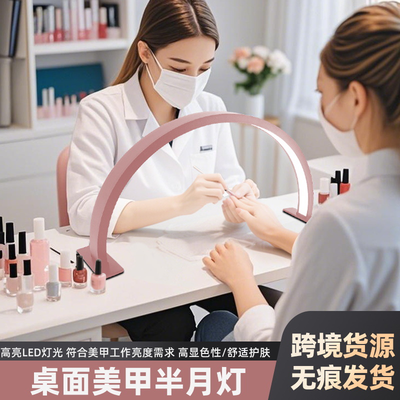 跨境半月灯桌面美甲美容灯U弧形带钻LED护眼美容院桌面补光台灯