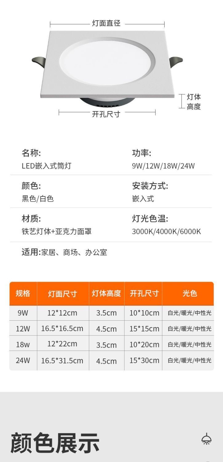 灯光颜色 白壳双头18w【开孔10*20CM】,黑壳双头18w【开孔10*20CM】,白壳双头24w【开孔10*20CM】,黑壳双头24w【开孔10*20CM】,白壳双头36w【开孔15*30CM】,黑壳双头36w【开孔15*30CM】,白壳双头48w【开孔15*30CM】,黑壳双头48w【开孔15*30CM】