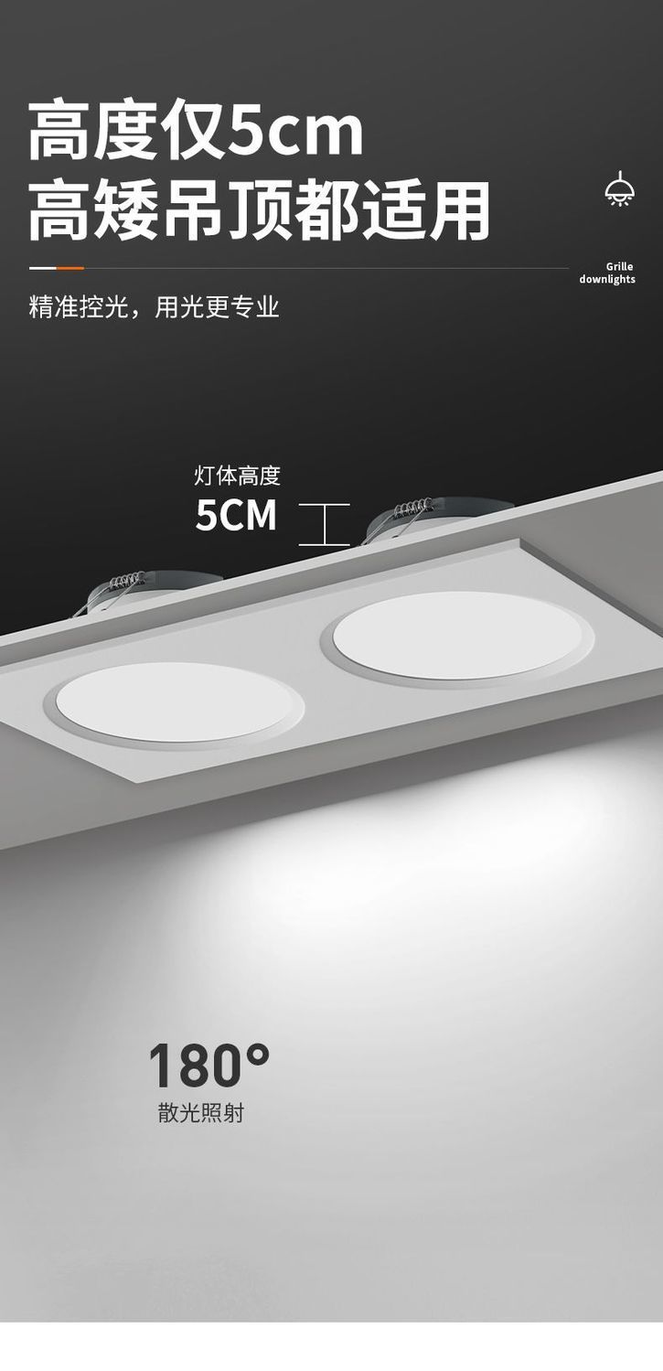 超薄型ダウンライトled長方形スポットライト埋め込み式リビングルーム吊り天井寝室メインライトデザインダブルヘッド斗胆灯