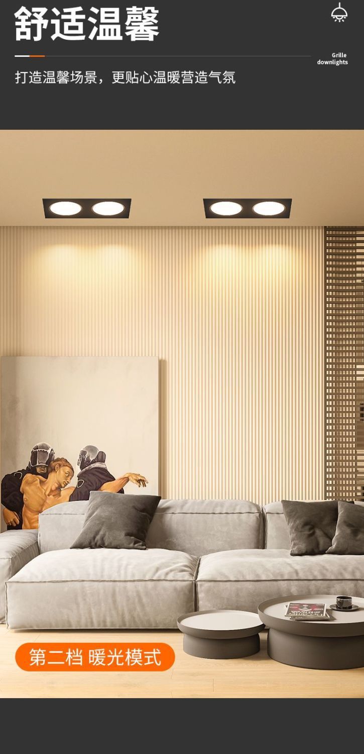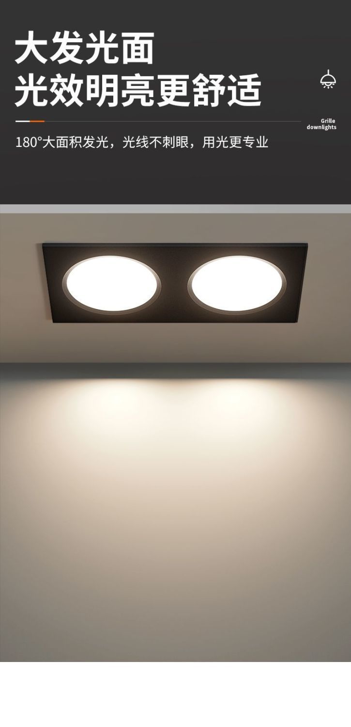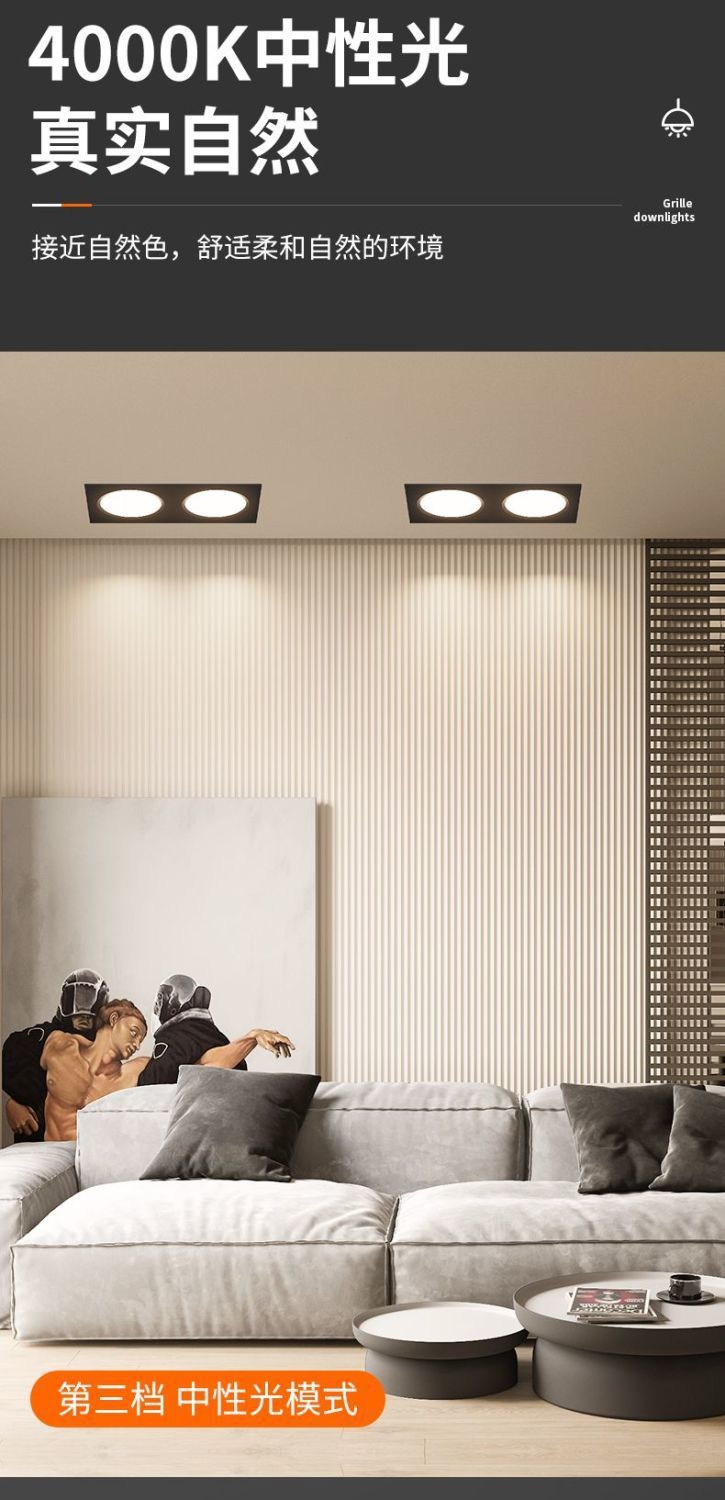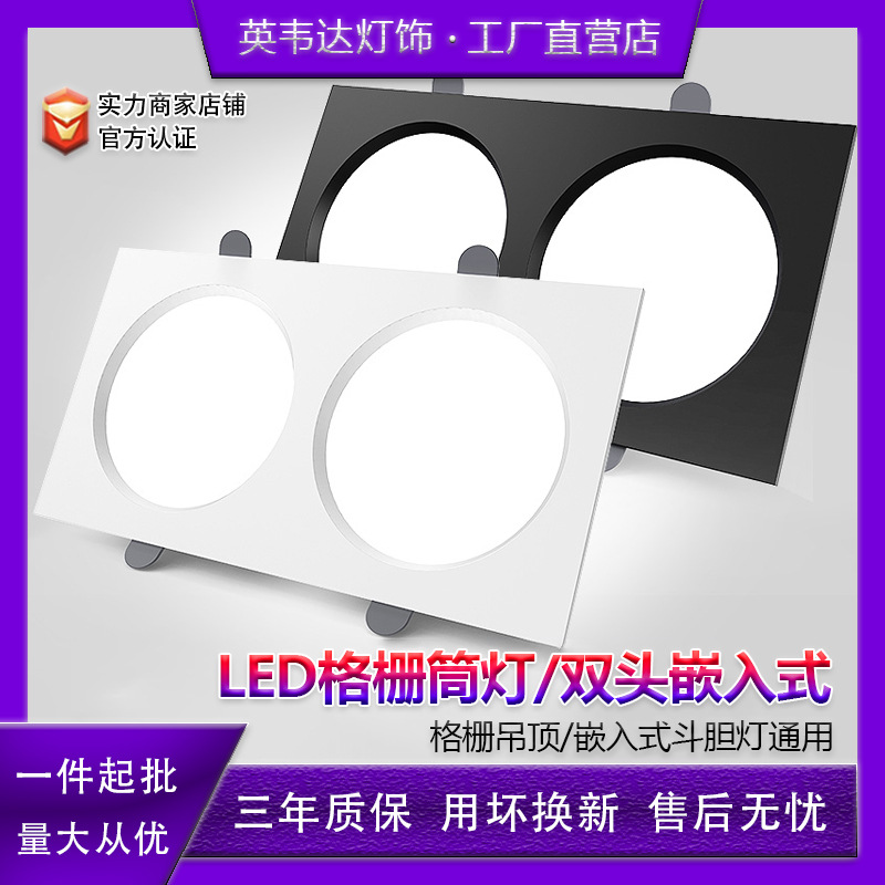 正方形ダウンライト LEDグリッドライト ダブルヘッドスポットライト リビングルーム通路グリッド天井ブドウ棚埋め込み型ダウンライト