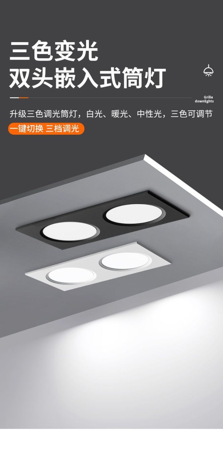 三色変光led角型ダウンライトシルバー色ダブルヘッドグリルライト店舗吊り下げシングルヘッドダブルヘッドledダウンライト