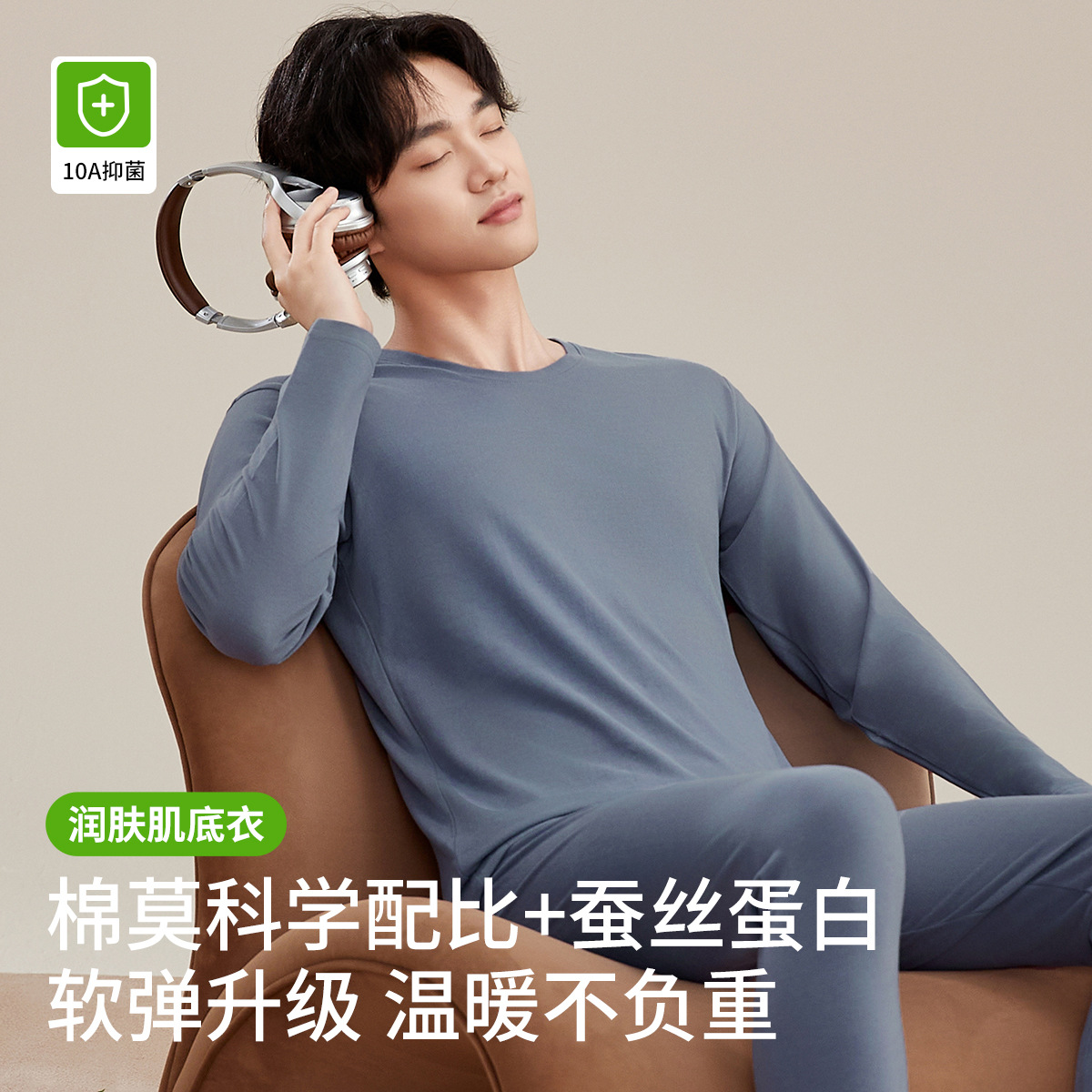 男士保暖内衣套装莫代尔双面磨绒打底衫A类内穿薄款纯棉秋衣秋裤