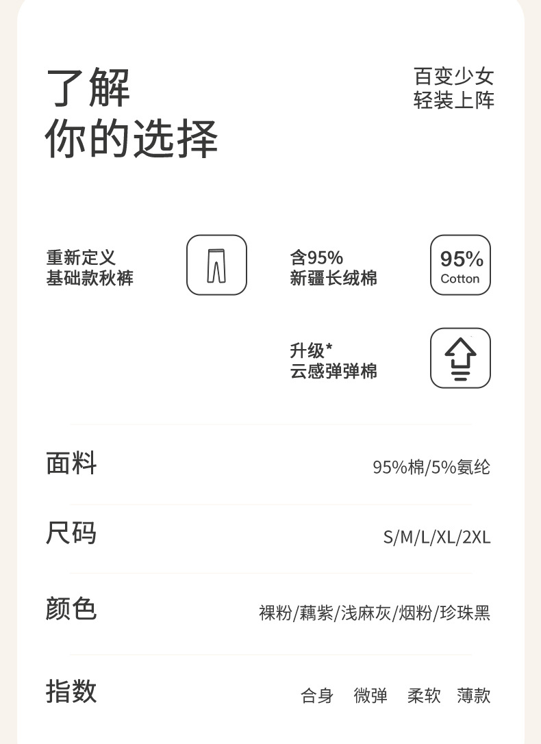女士春秋薄款秋裤纯棉莱卡弹力修身打底裤新款中腰内穿学生保暖裤