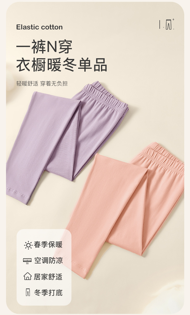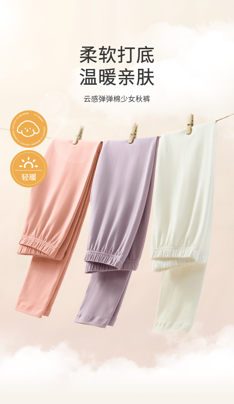 220g青少年纯棉薄款保暖裤双面磨绒A类内穿打底棉毛裤女大童秋裤