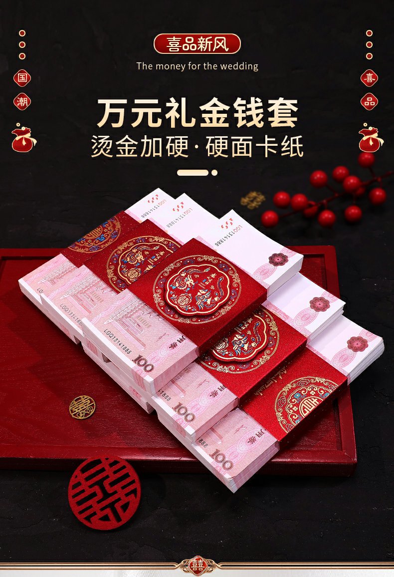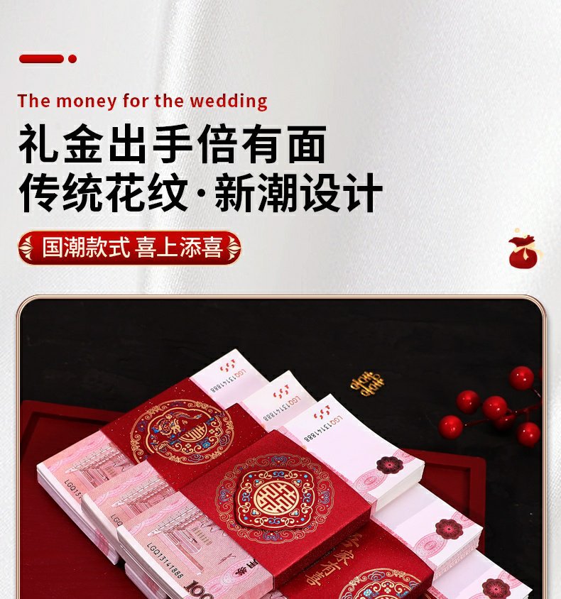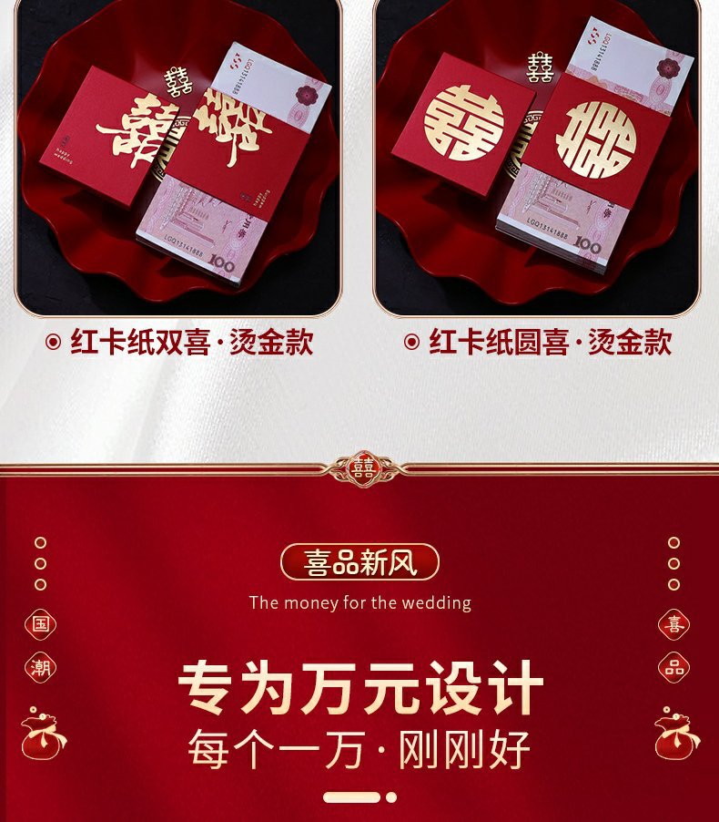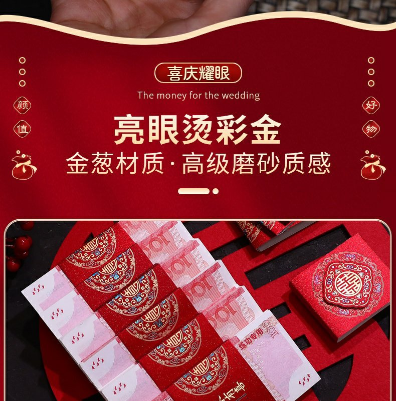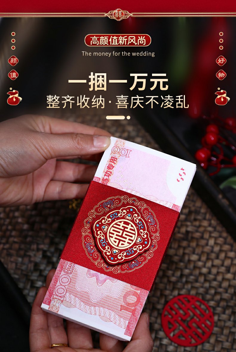 彩礼现金封条万元捆钱结婚钱套喜字红包订婚聘礼礼金绑钱喜钱扎带