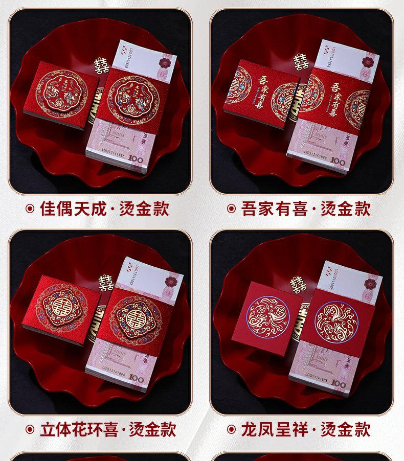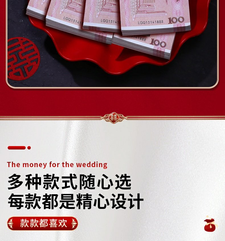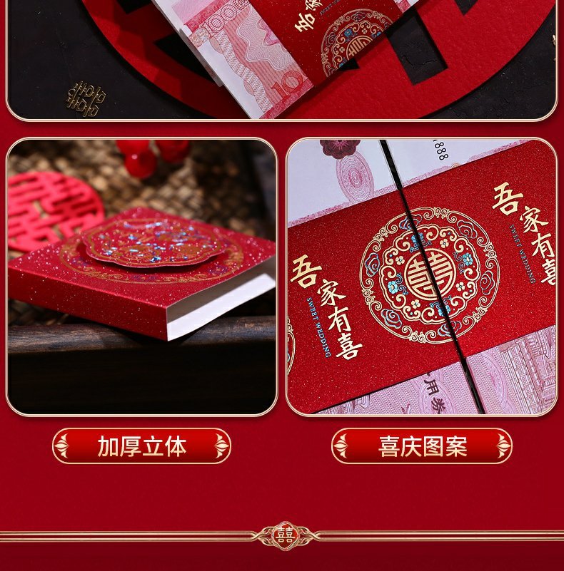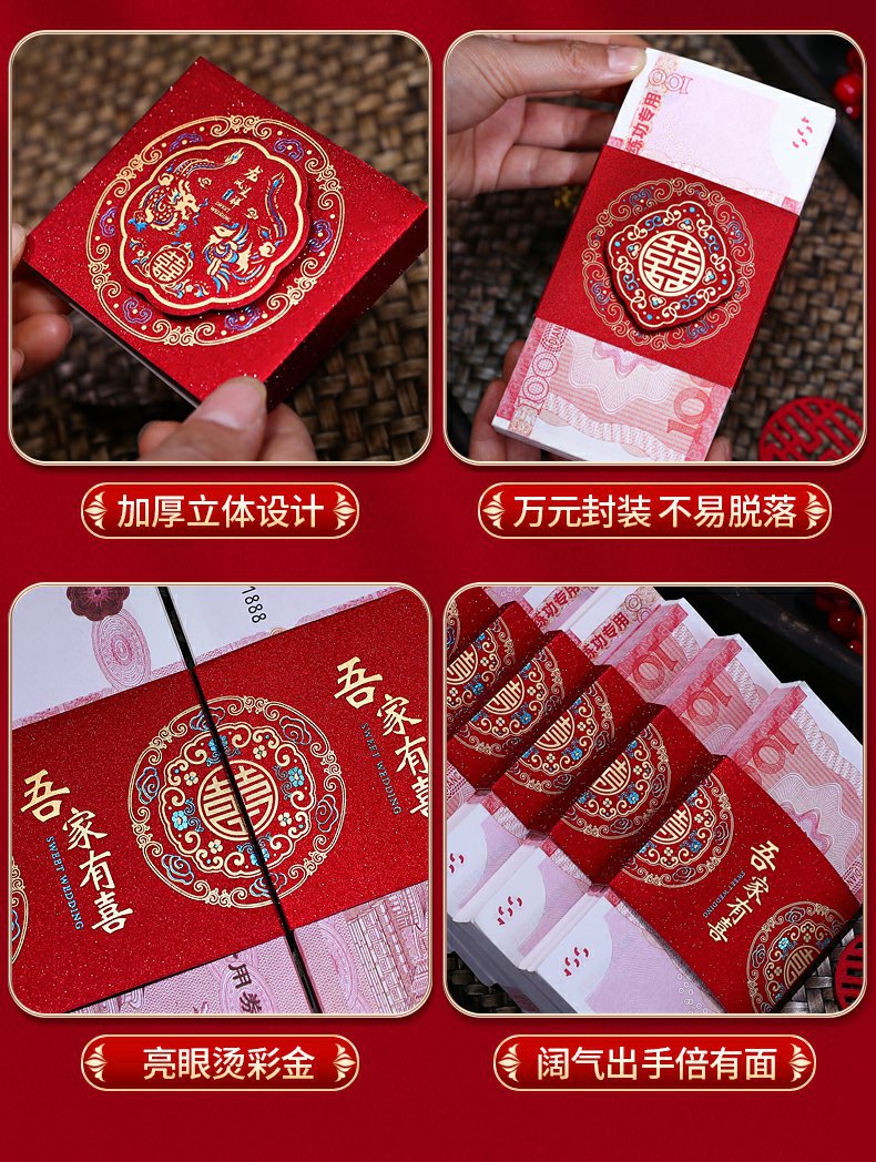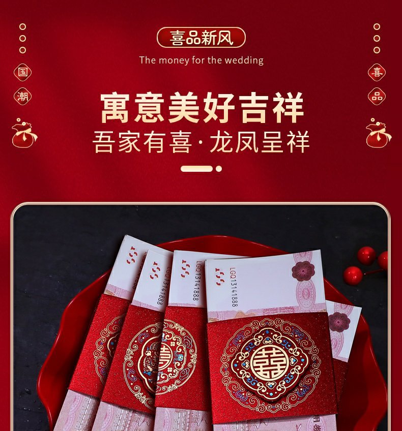 彩礼现金封条万元捆钱结婚钱套喜字红包订婚聘礼礼金绑钱喜钱扎带
