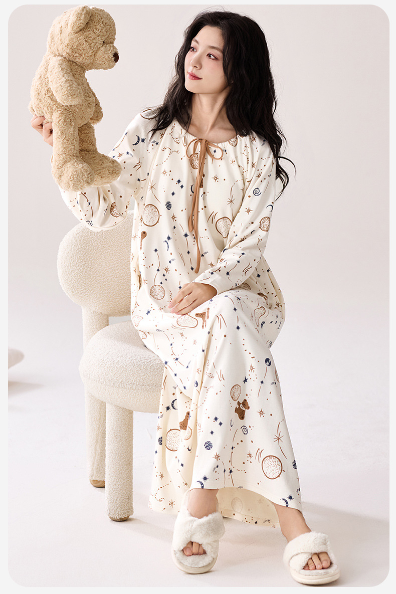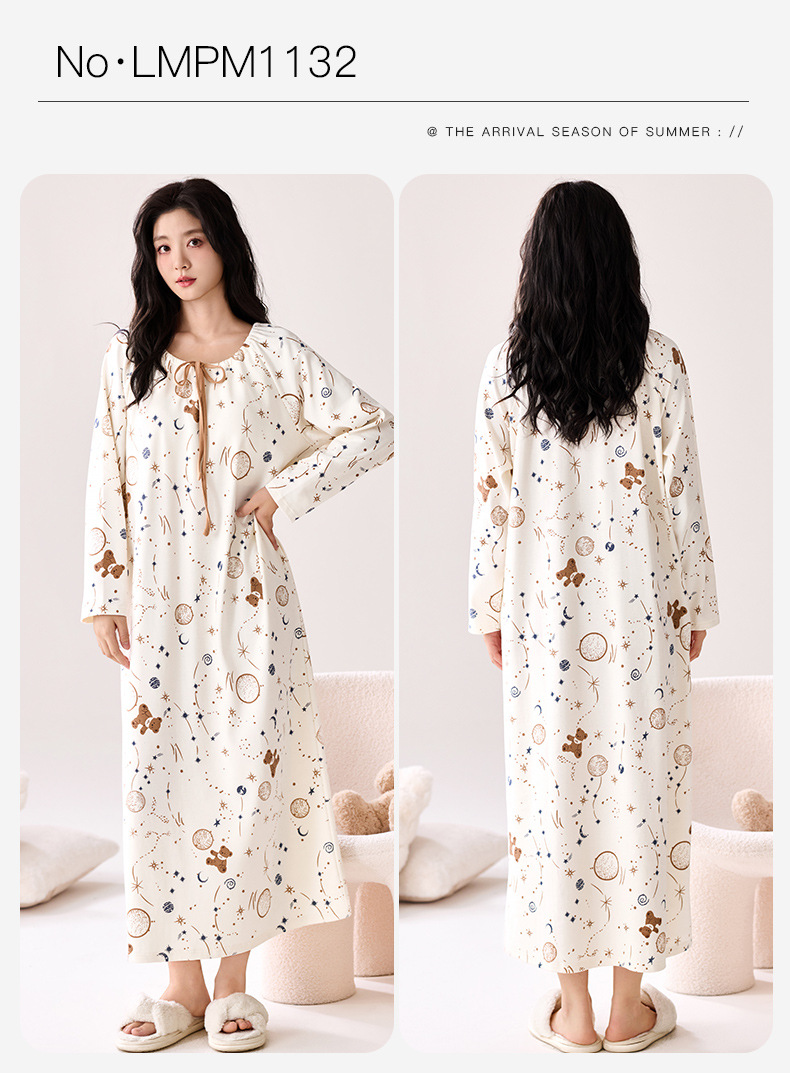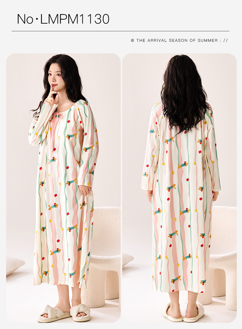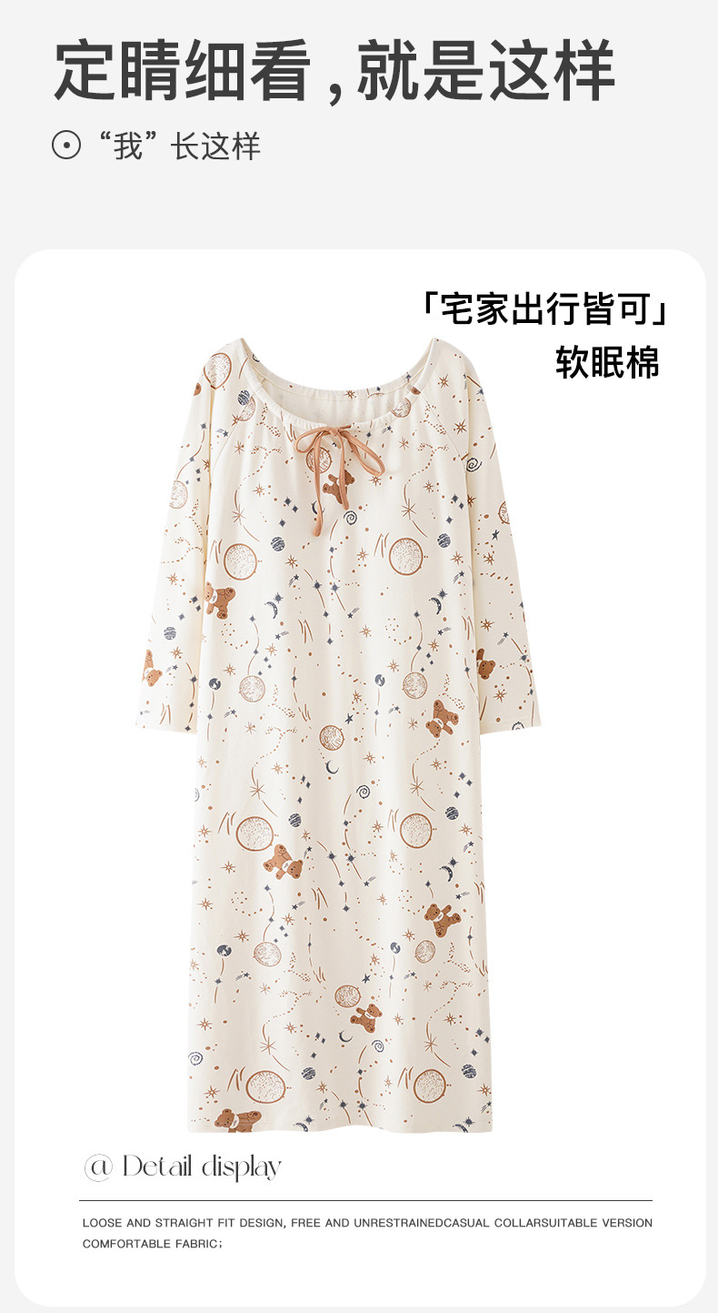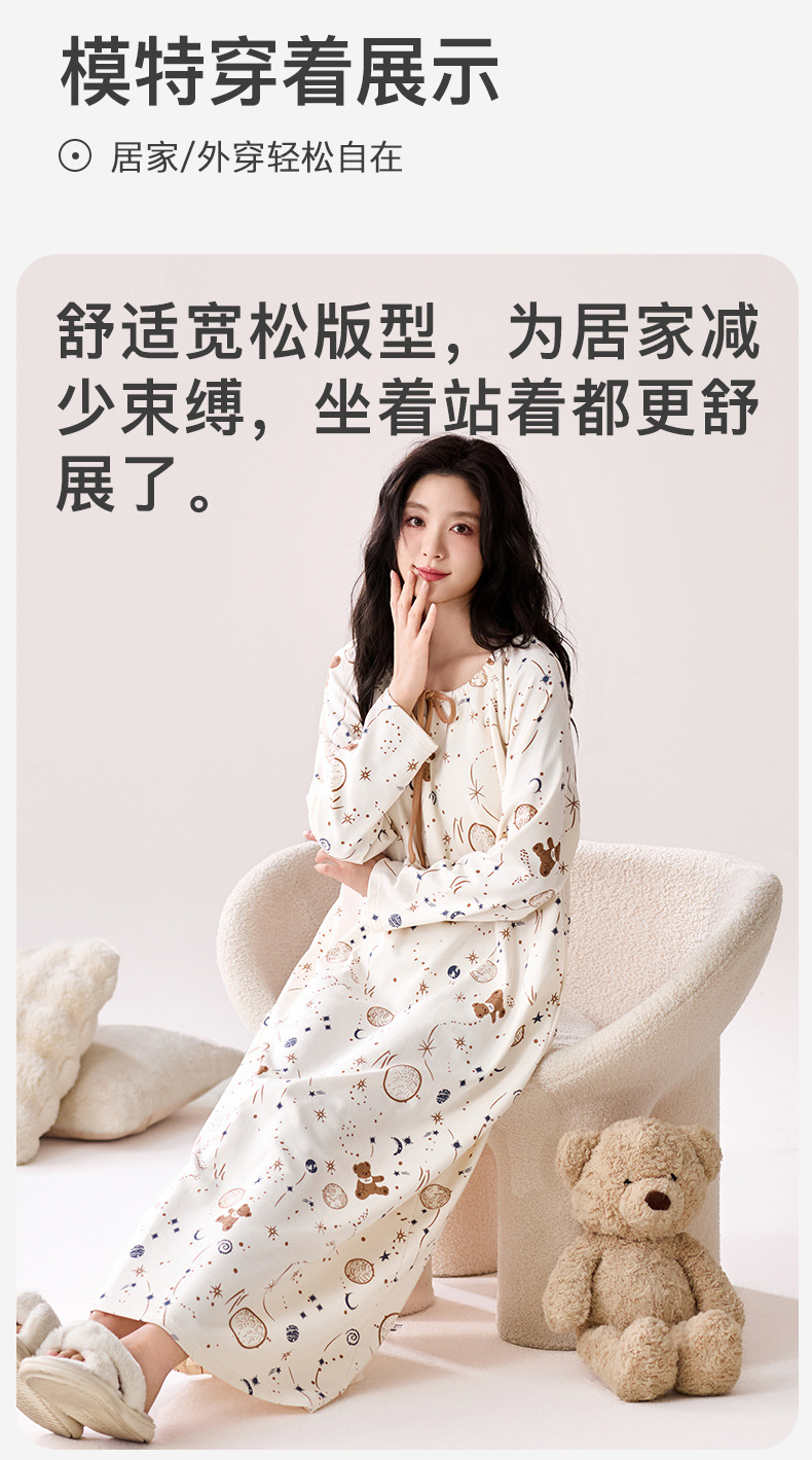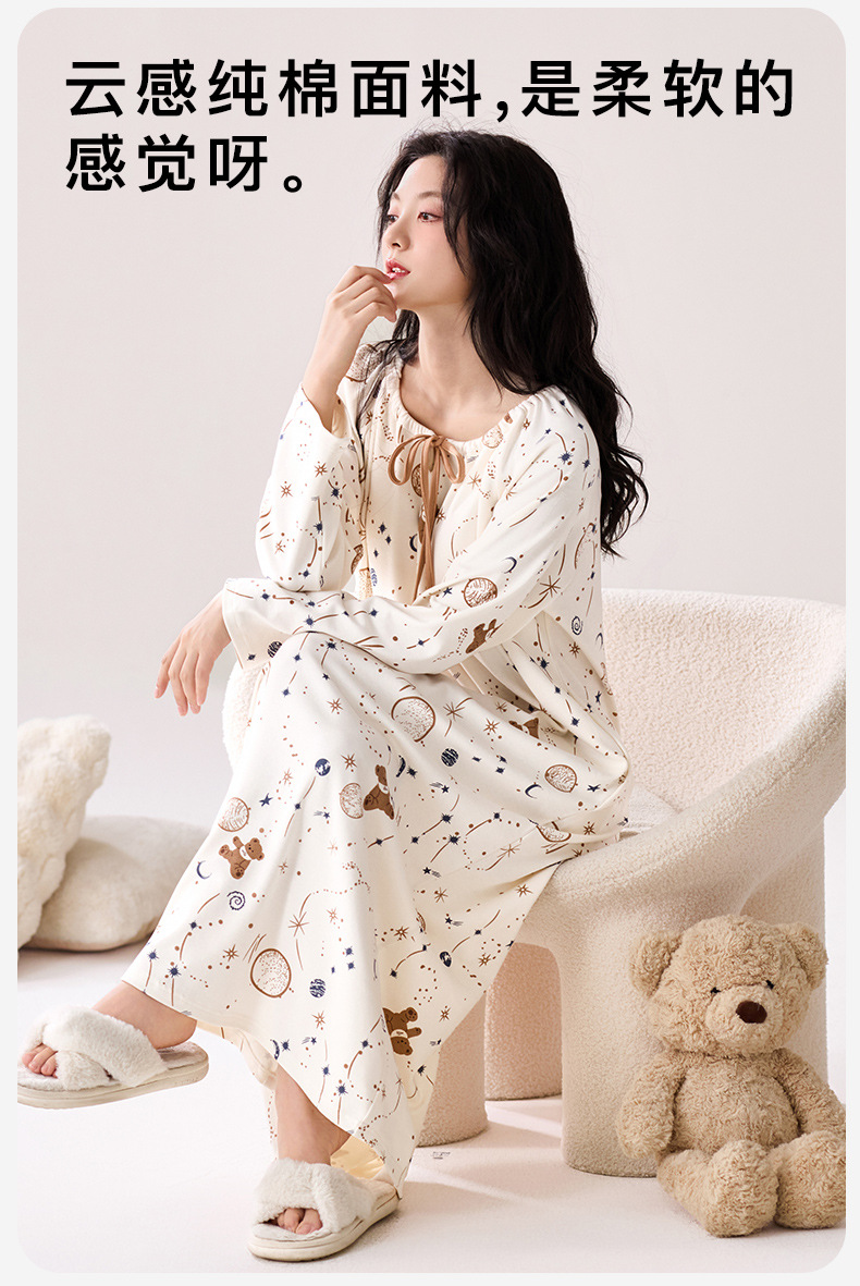 秋季新款长袖纯棉睡衣中长款舒适睡裙女士甜美可爱风家居服可外穿