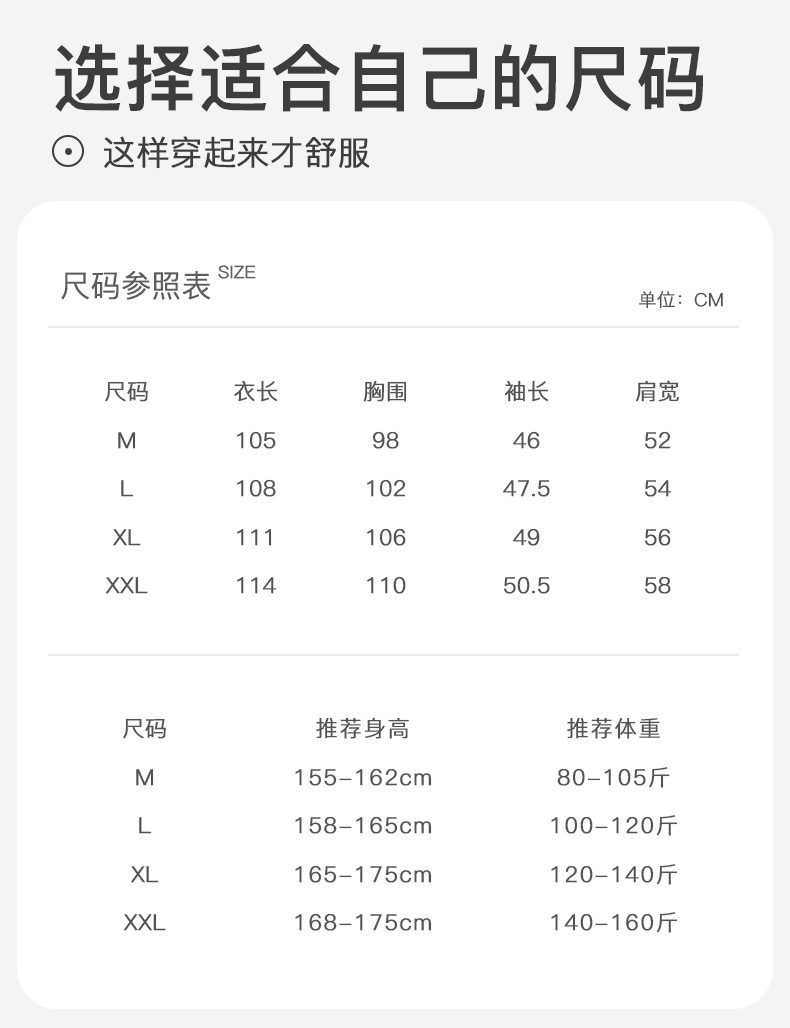 尺码 M(80-105斤),L(100-120斤),XL(120-140斤),XXL(140-160斤)
