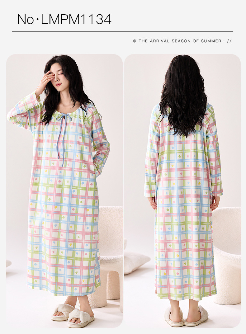 A类抗菌100%纯棉睡裙女士秋冬季长袖连衣裙女加大码全棉家居服女