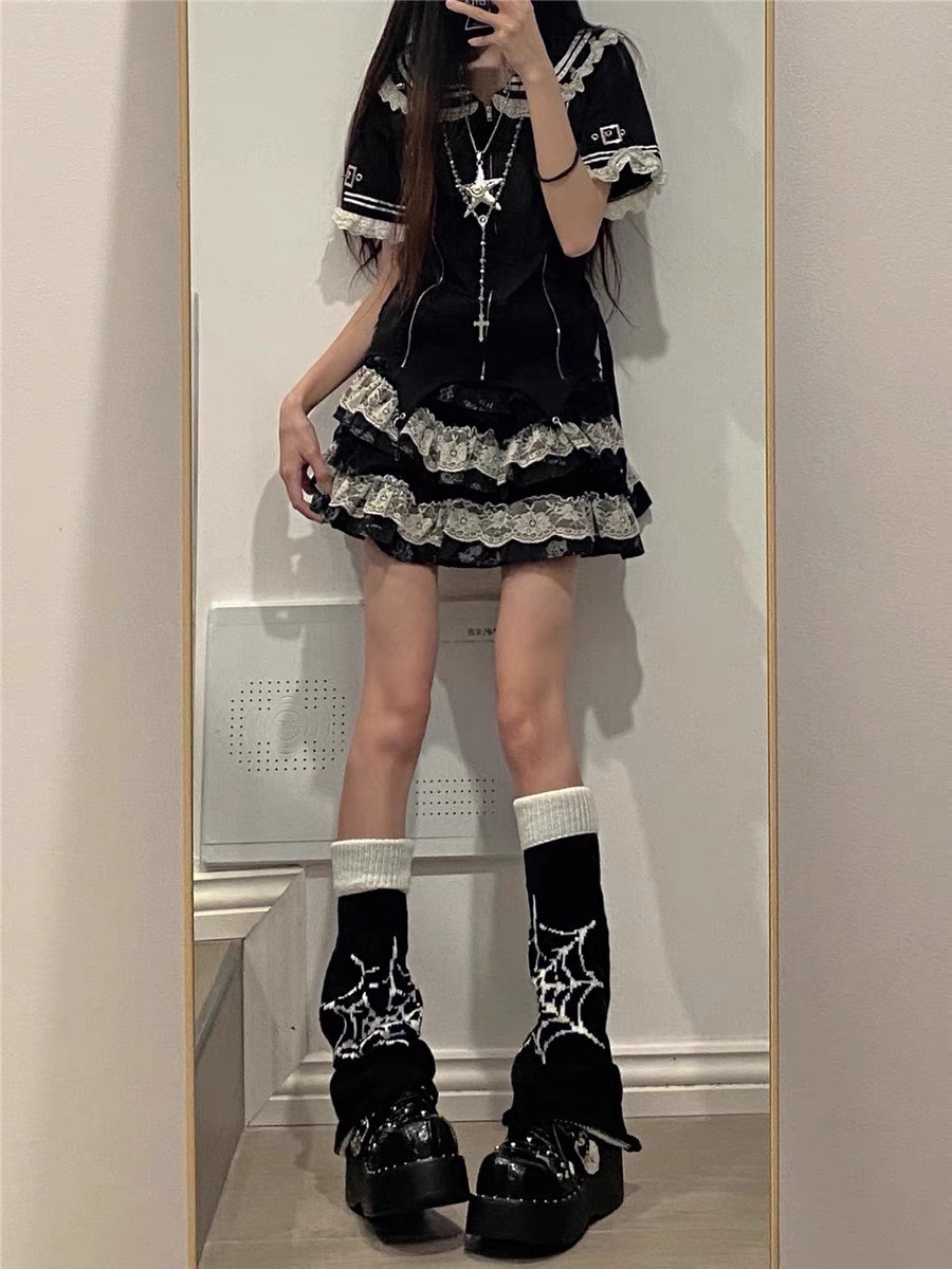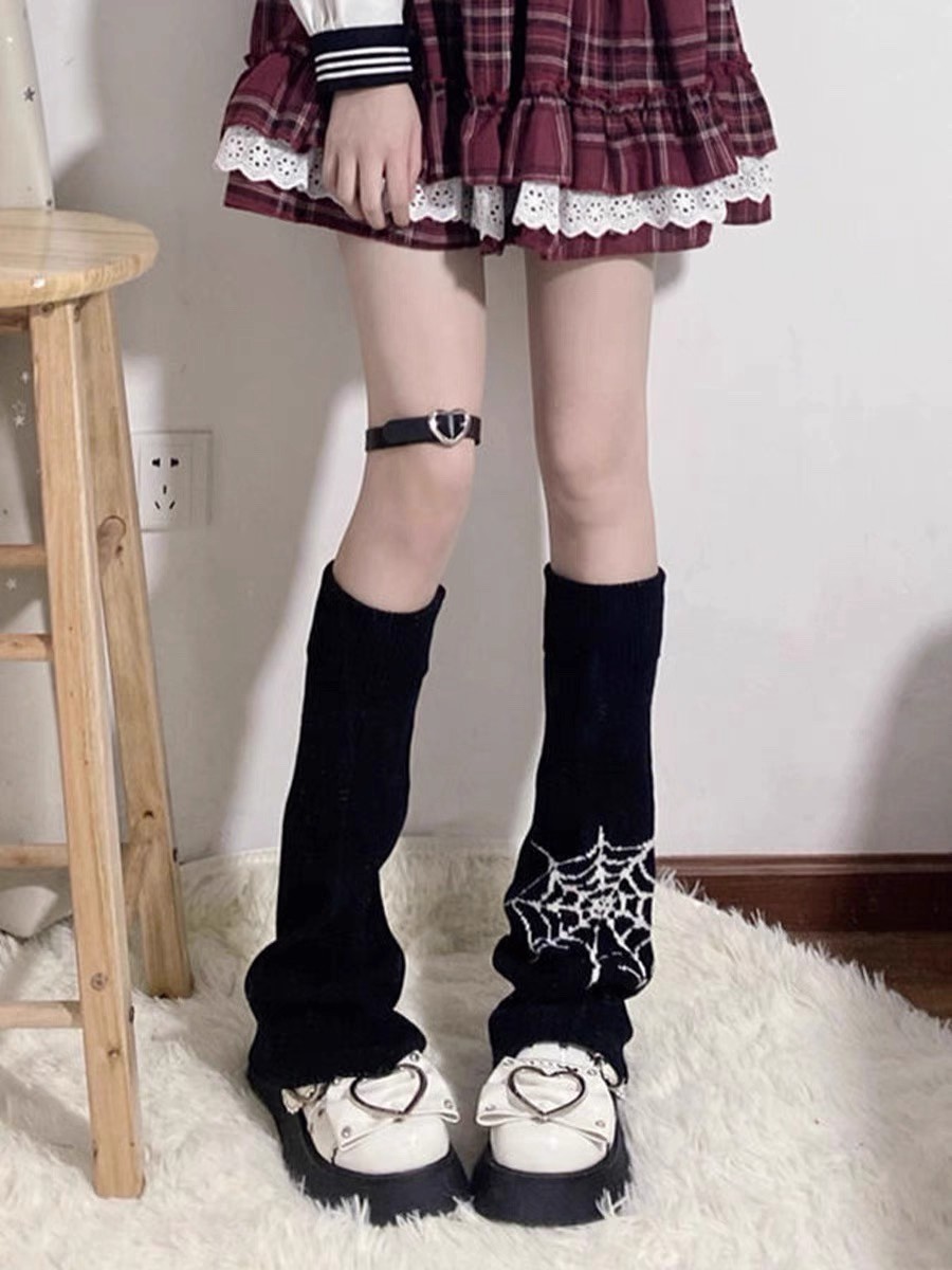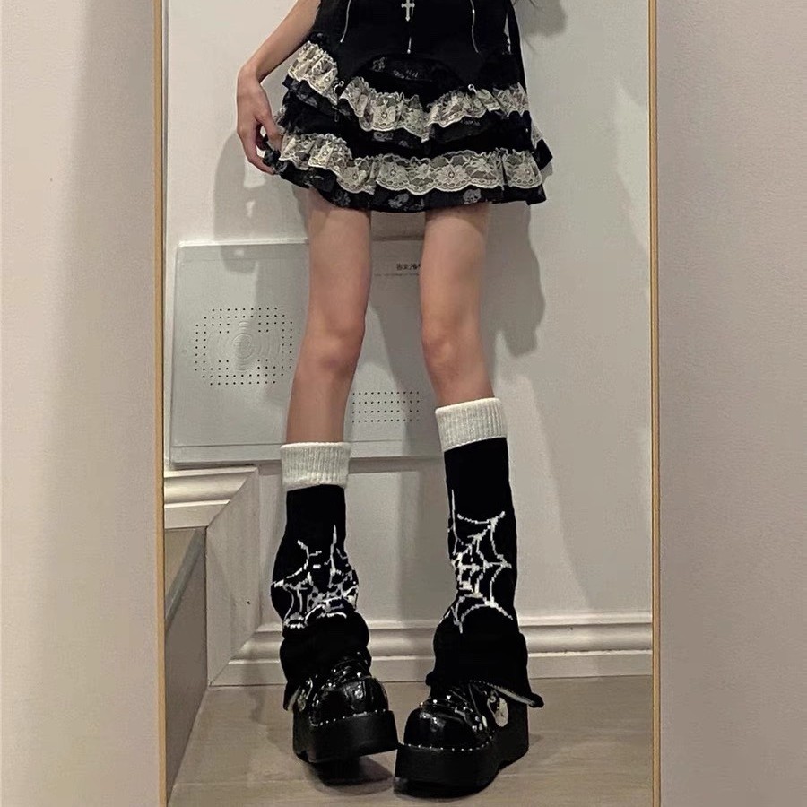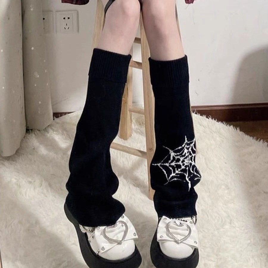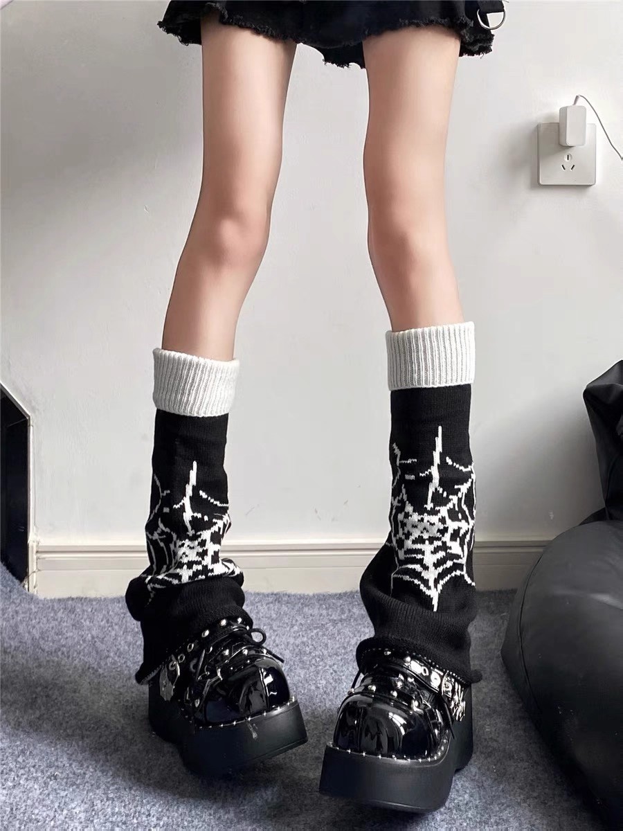 朋克风蜘蛛网星星小腿袜套辣妹y2k亚文化阔腿喇叭堆堆袜腿套