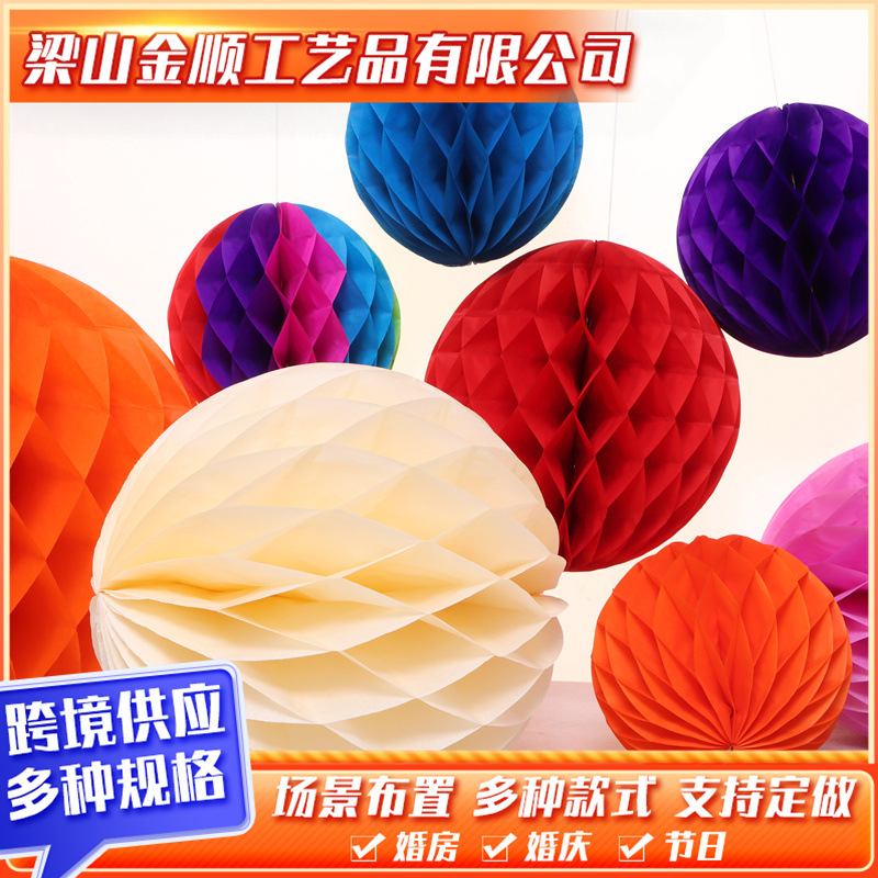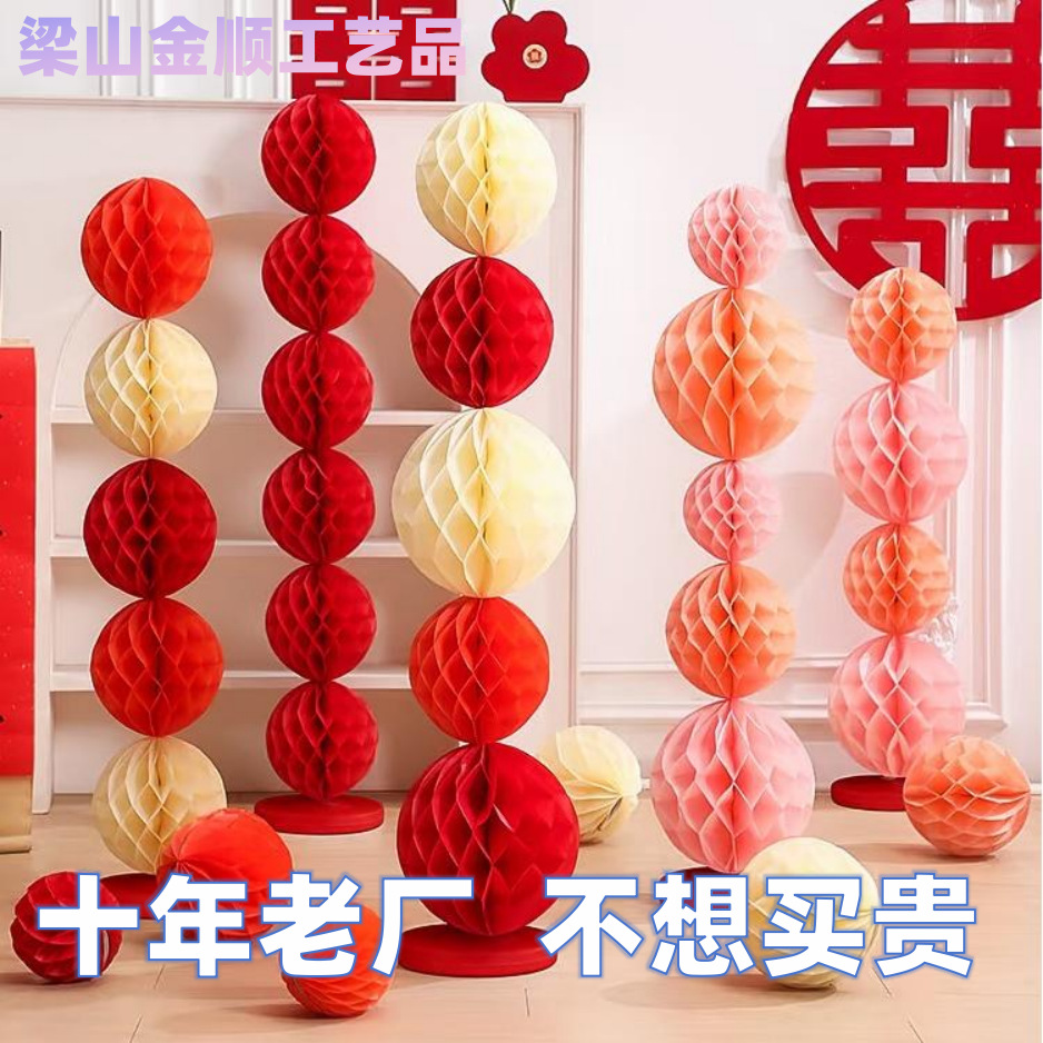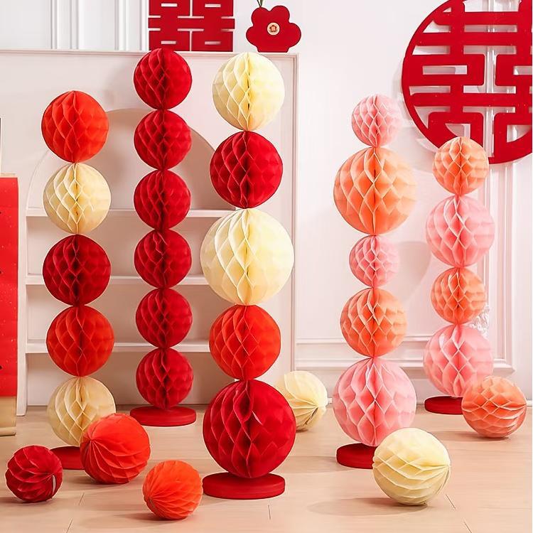 結婚式の部屋の装飾、ハニカムボール、紙球、柱、結婚式や祝祭の飾り、新年の飾り、ハニカム紙提灯、結婚式の装飾