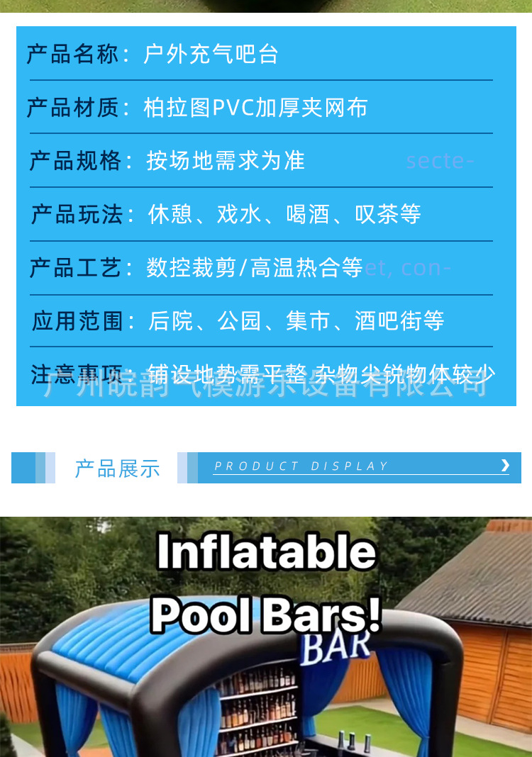 可移动充气休闲餐吧大型充气水上吧台帐篷悠闲派对餐吧水池厂家