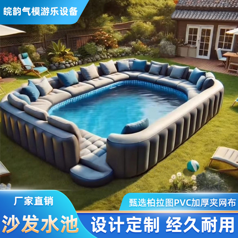 户外加厚PVC大型沙发水池可移动充气水池游泳池水上乐园厂家
