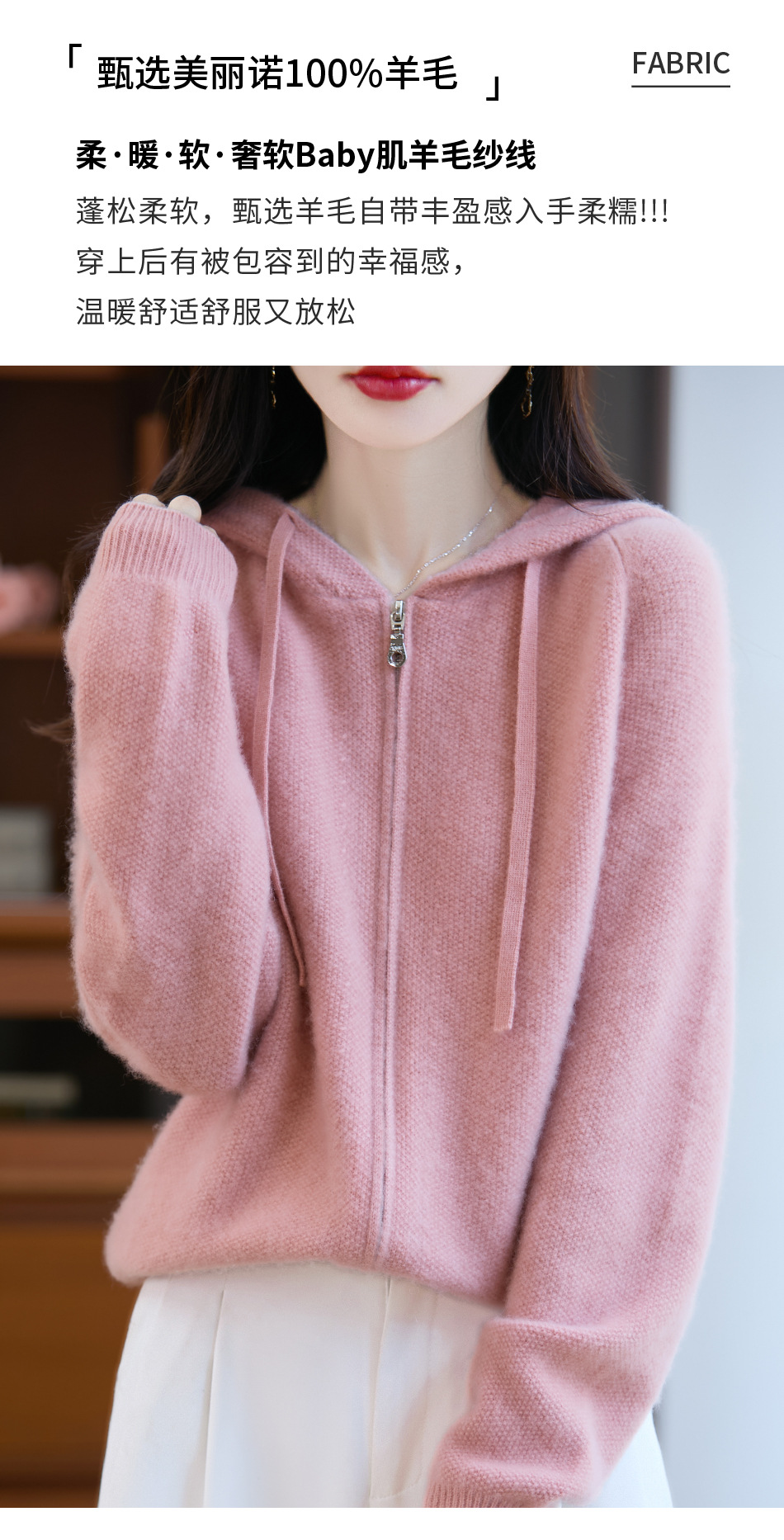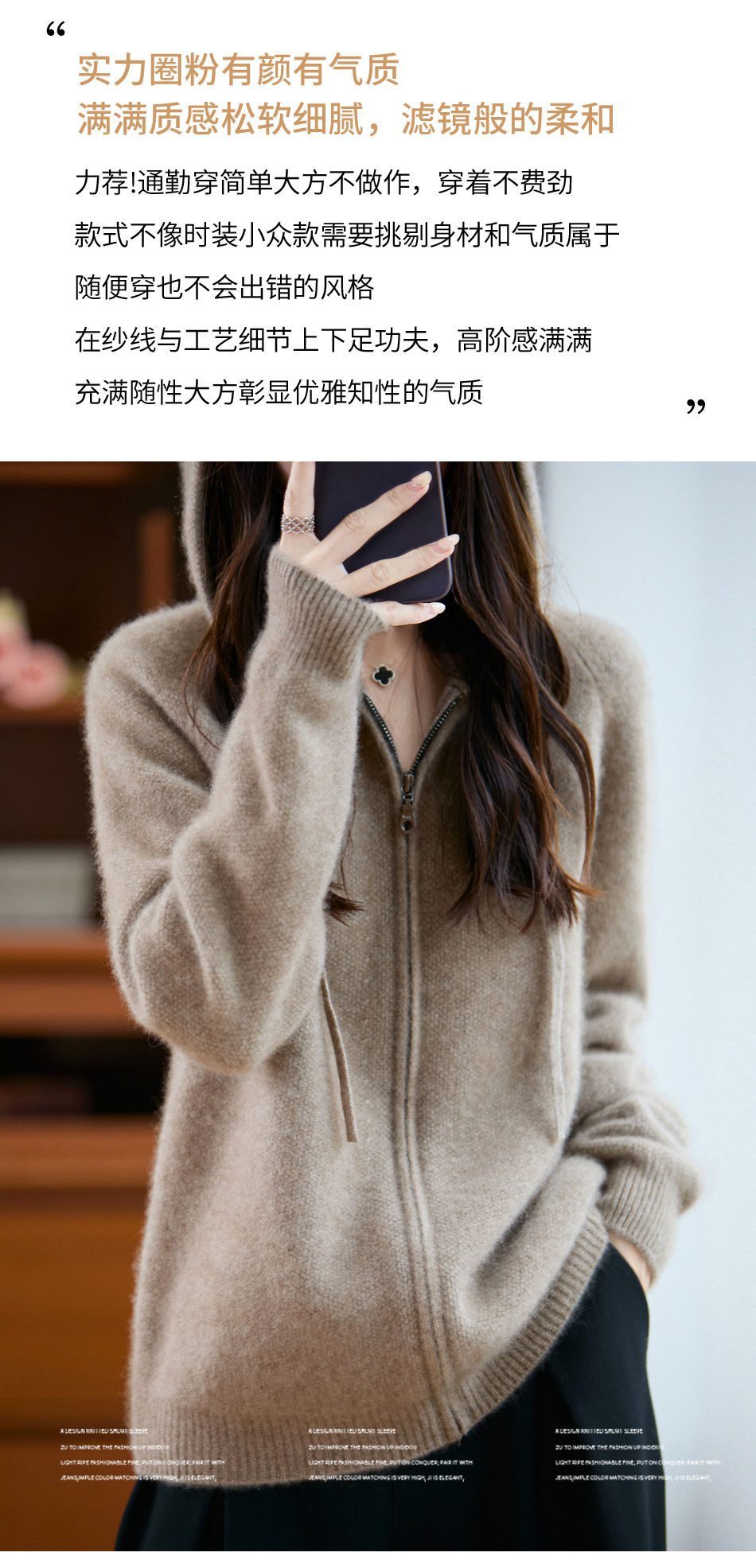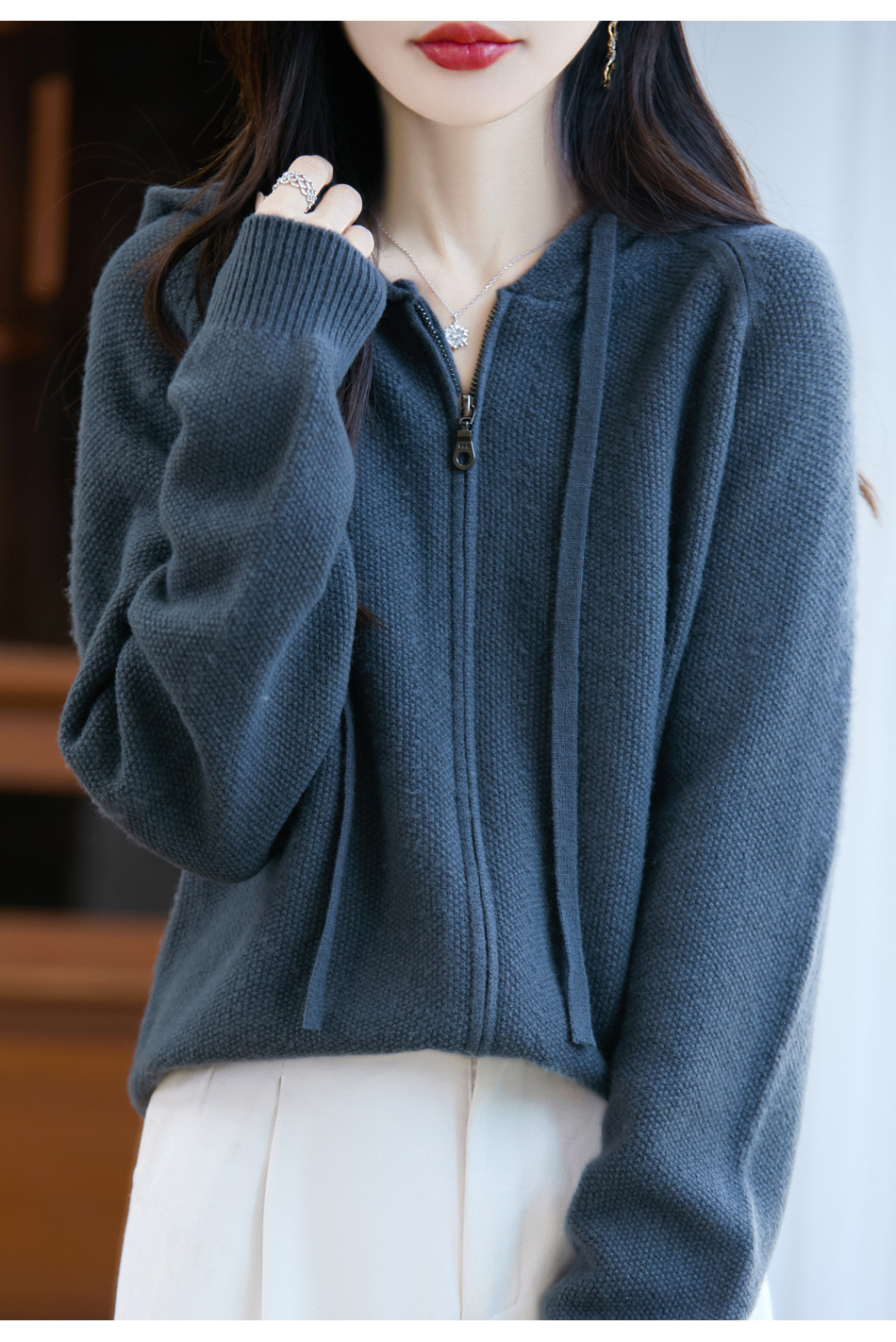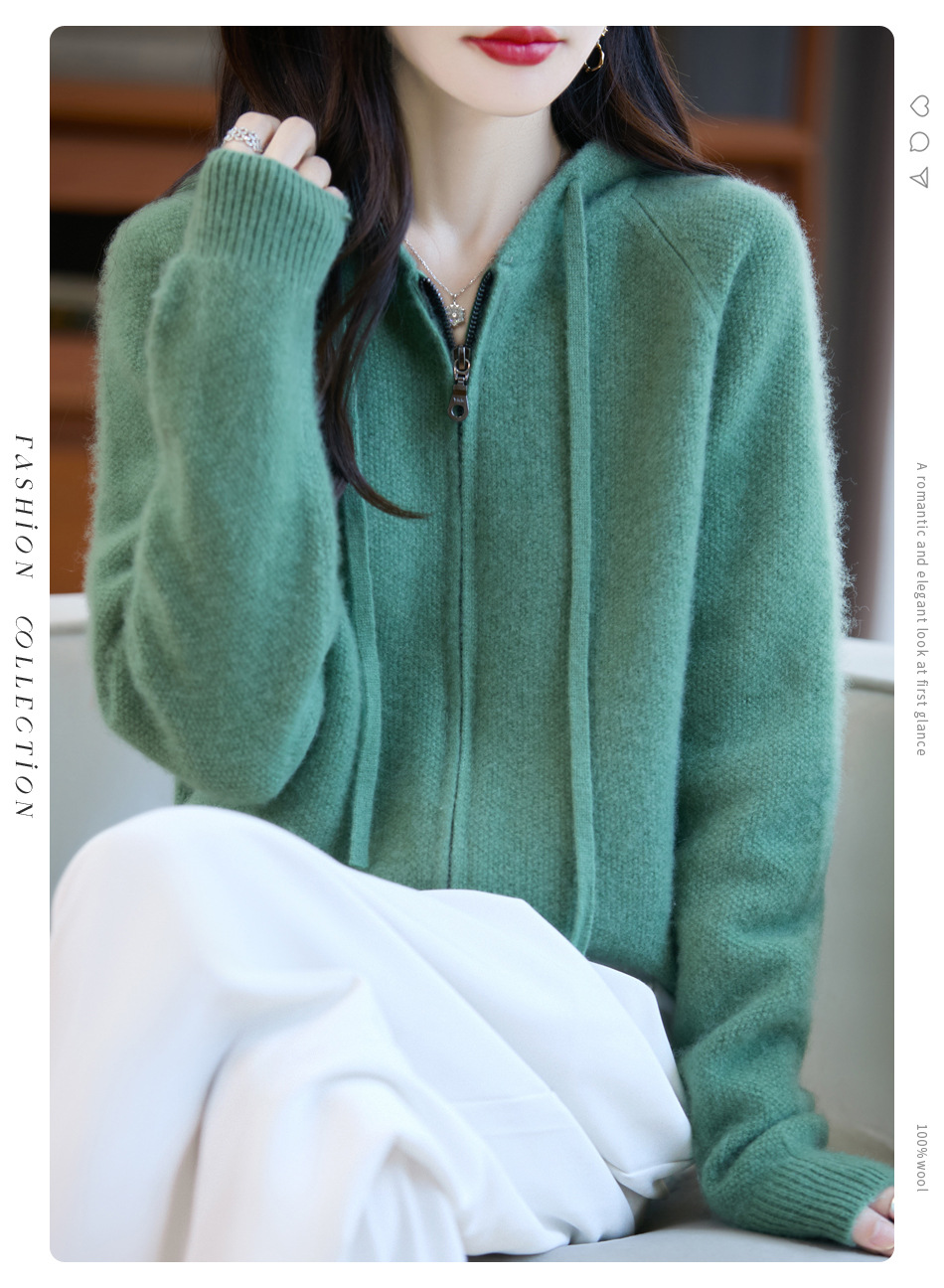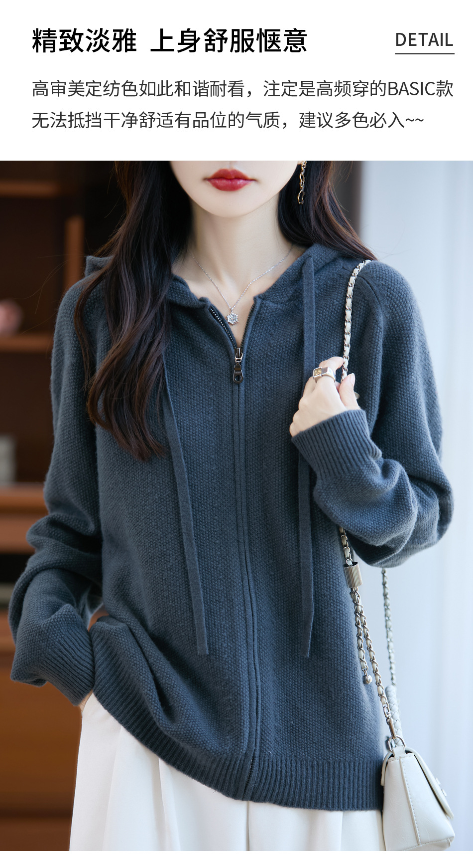 25年新作 純毛レディースフード付きジッパーカーディガン 長袖セーター ゆったりウールセーター ニットジャケット
