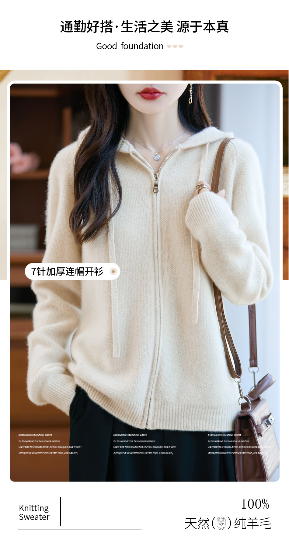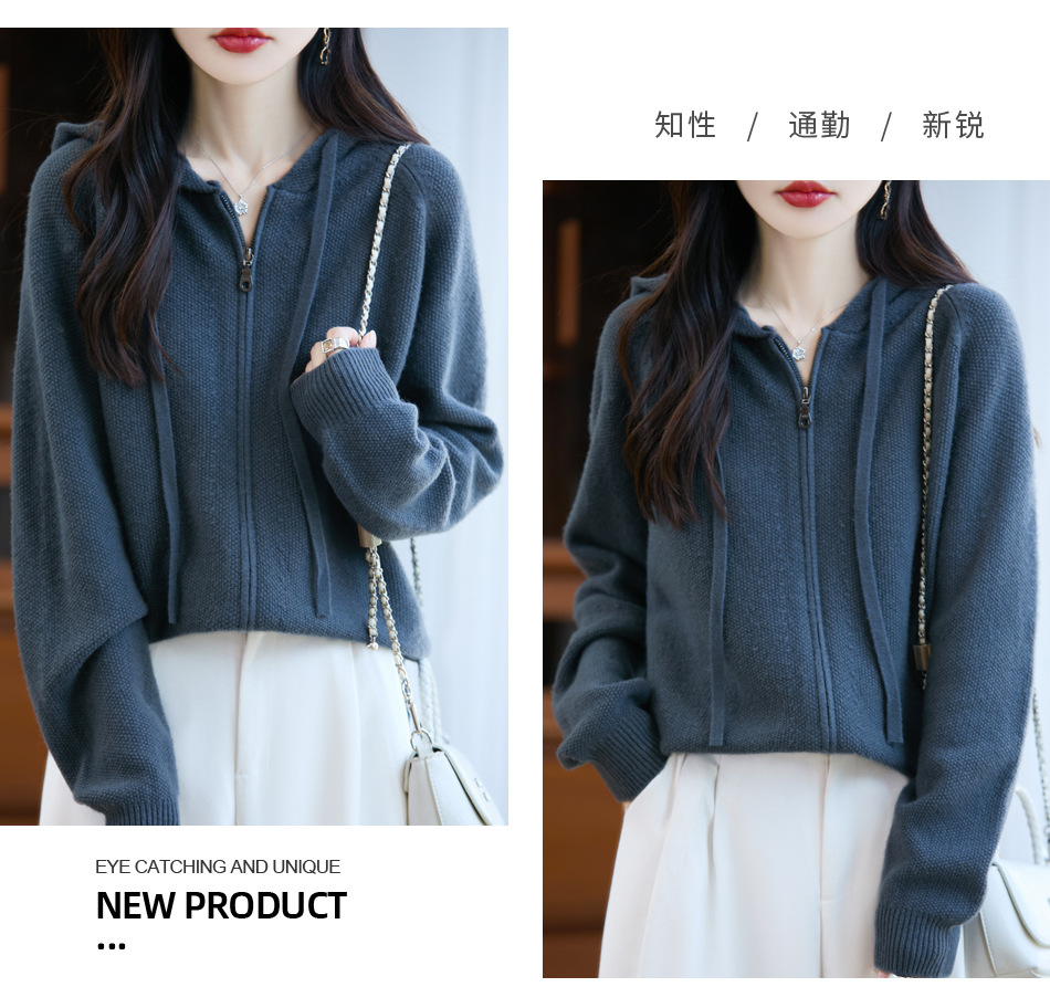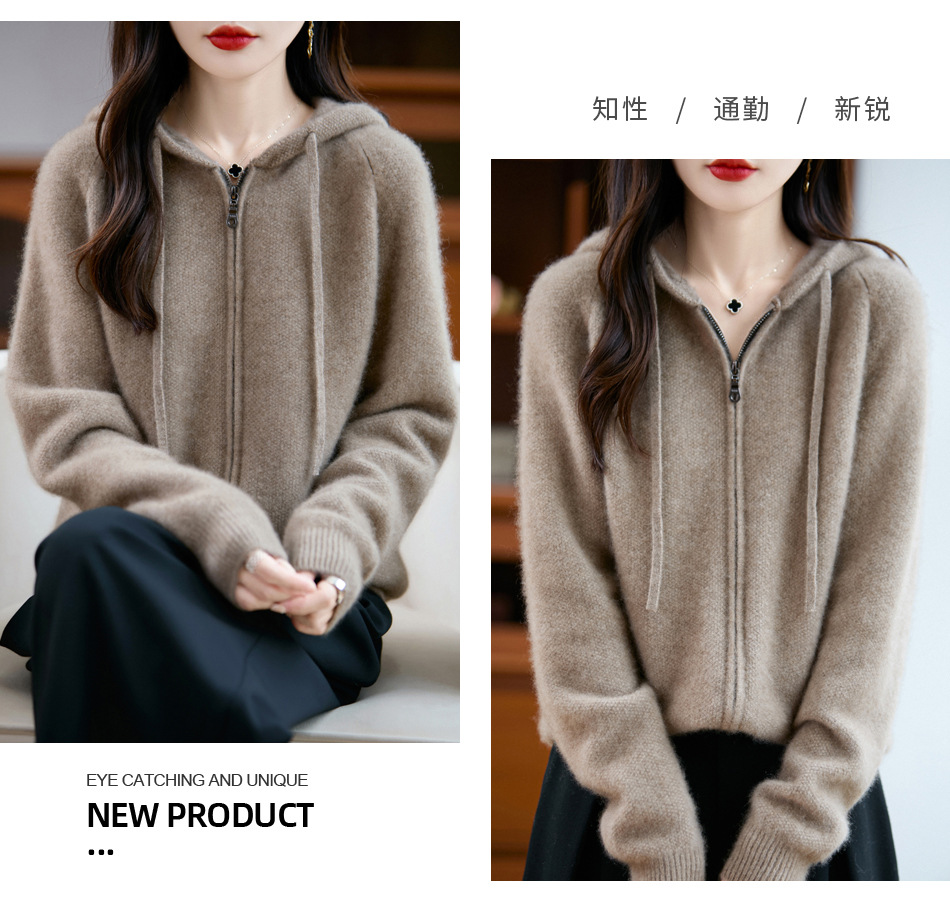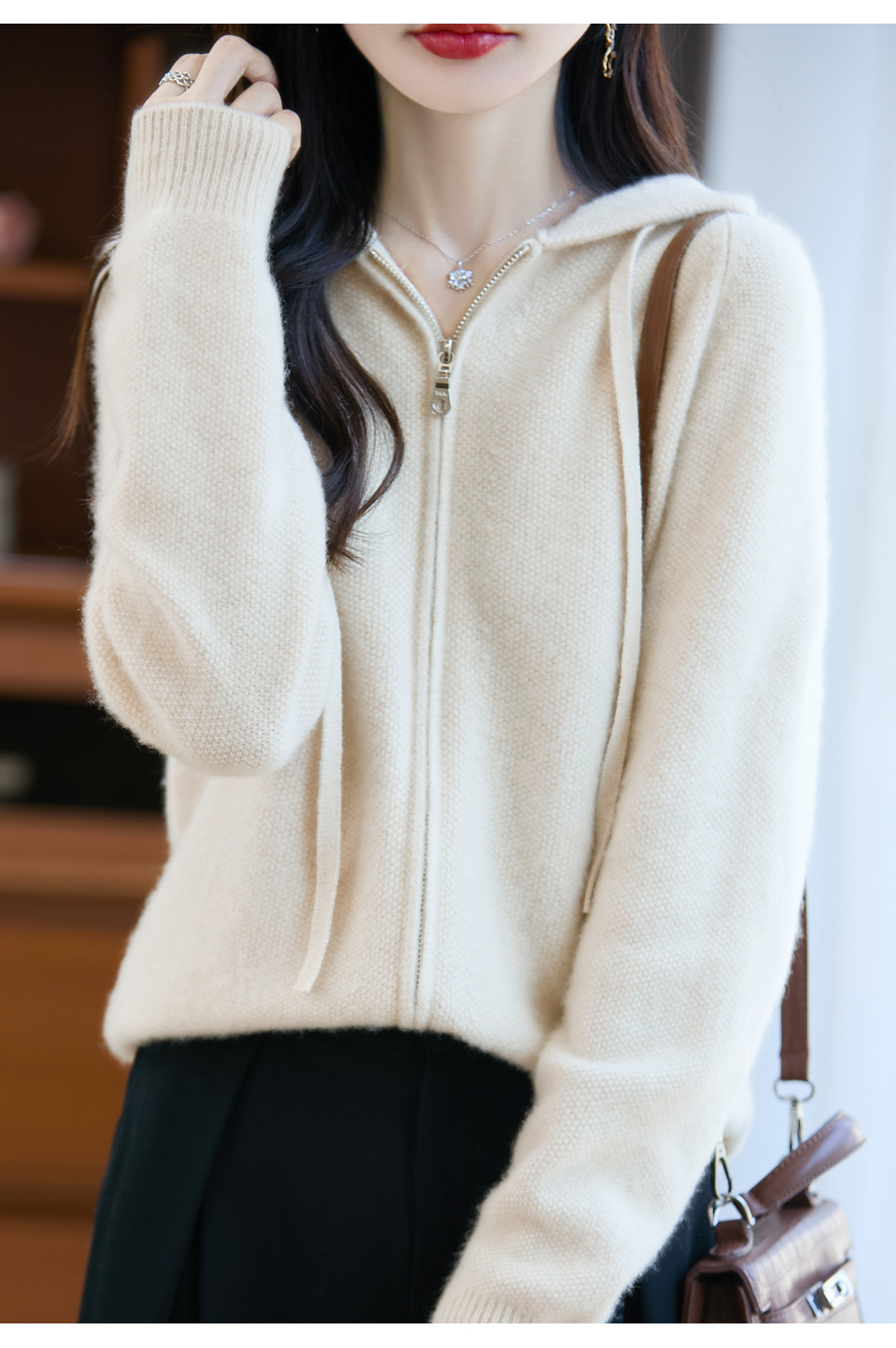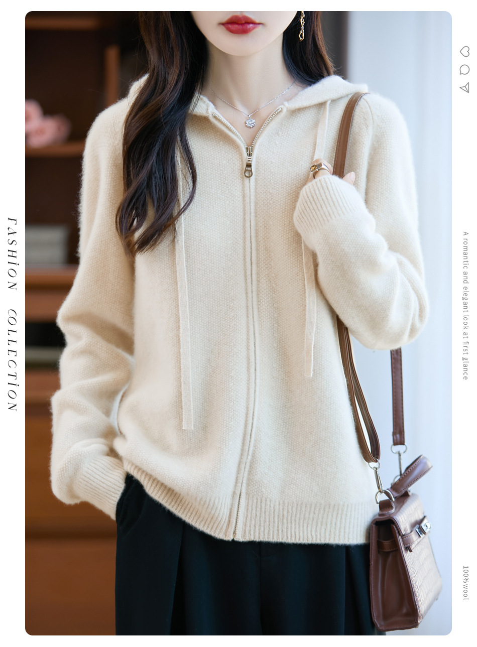 25年新作 純毛レディースフード付きジッパーカーディガン 長袖セーター ゆったりウールセーター ニットジャケット