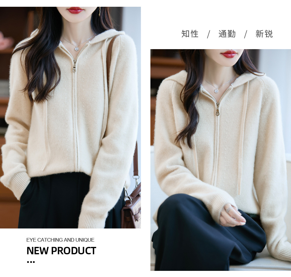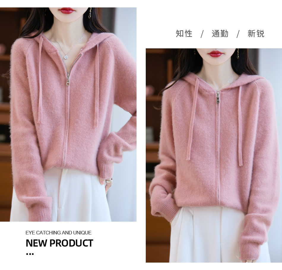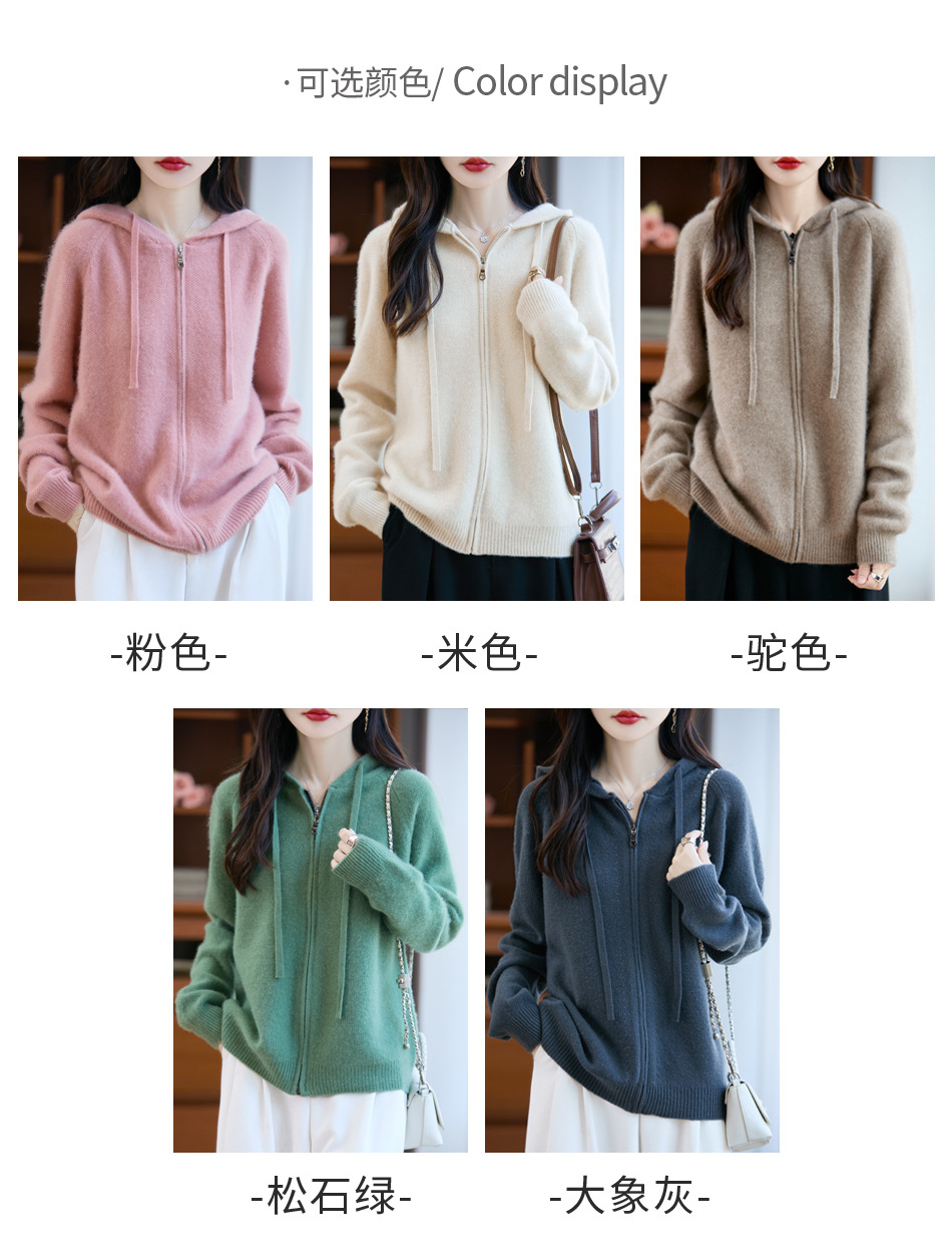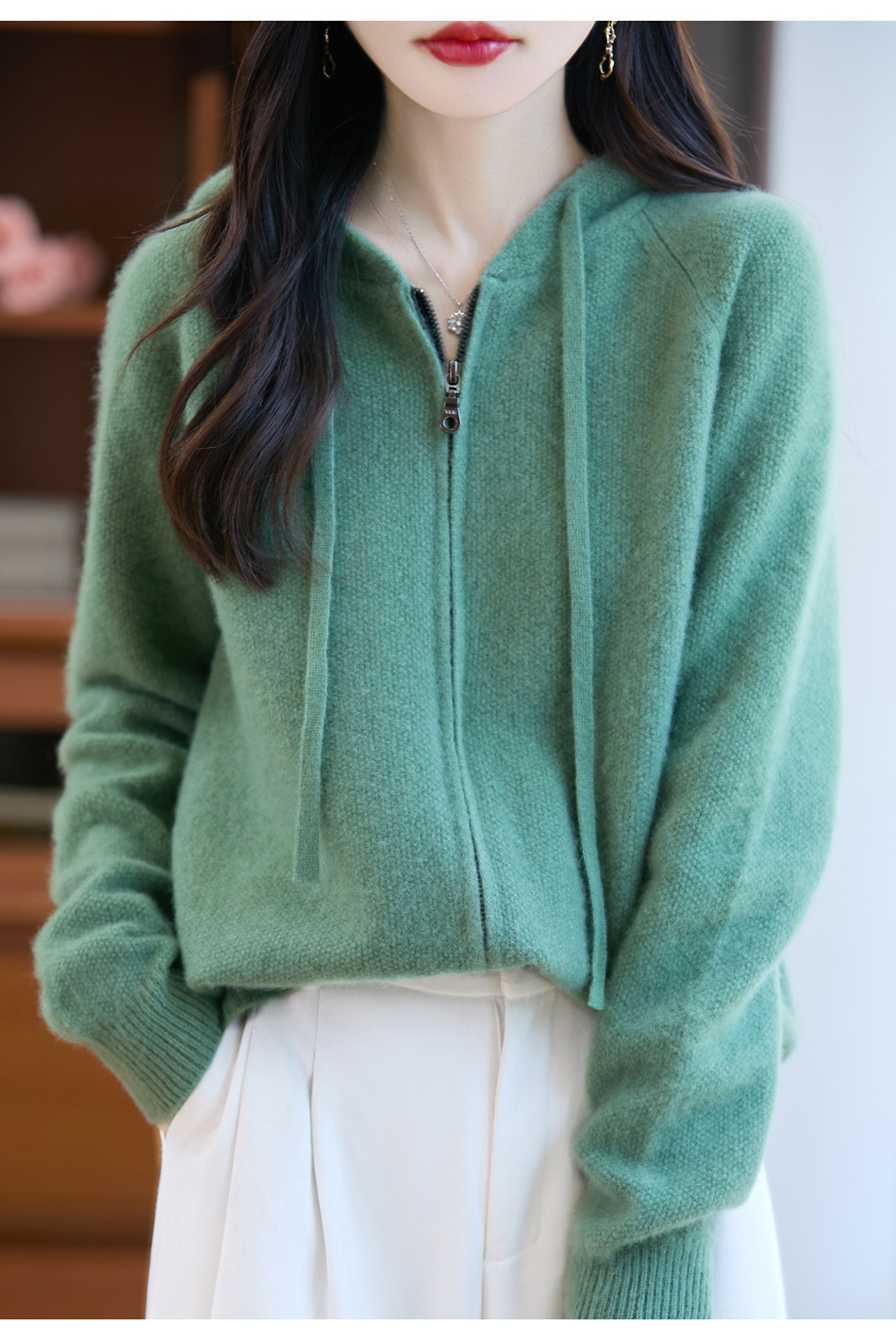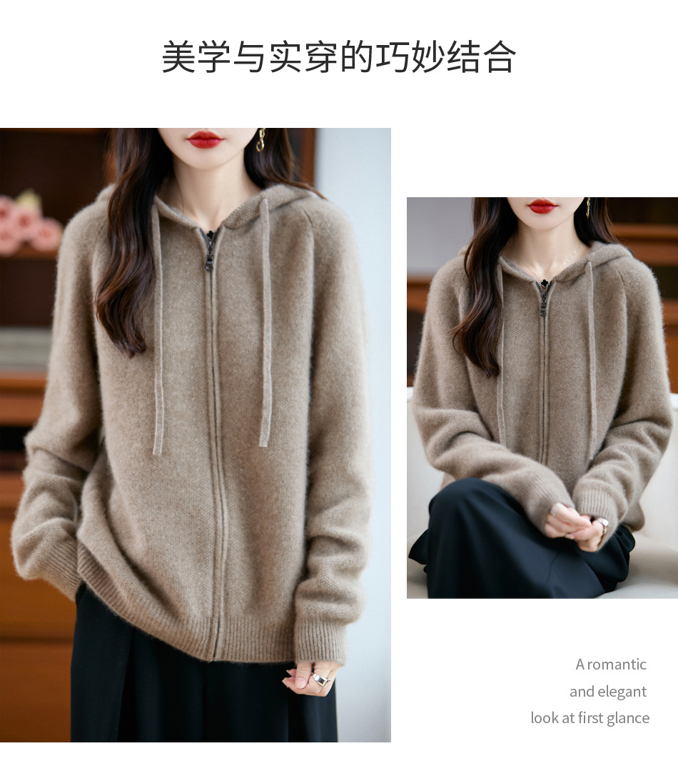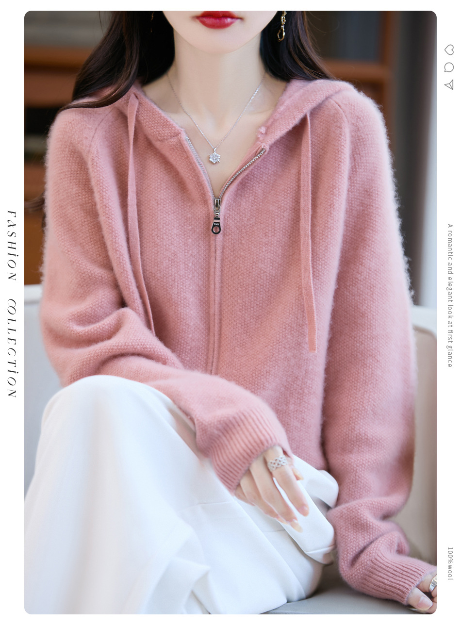 25年新作 純毛レディースフード付きジッパーカーディガン 長袖セーター ゆったりウールセーター ニットジャケット