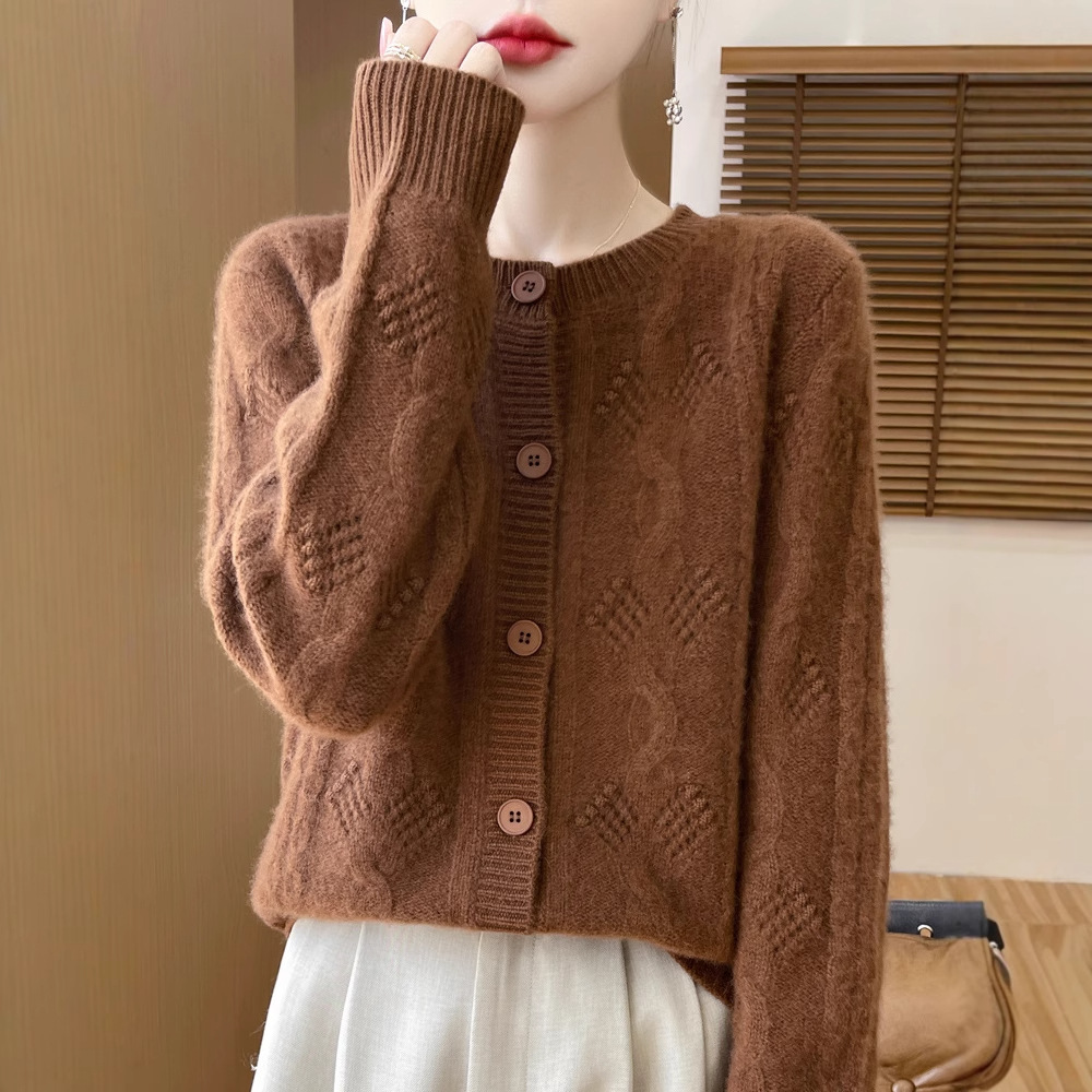 国境を越えた卸売りは24秋冬の新型女装の第一線の服の丸首にアイロンをかけてファッションの短いニットのカーディガンのセーターを編みます。
