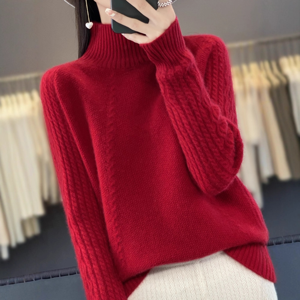 秋冬の新型セーターの女性の半高襟の長袖の婦人服の上着はゆったりしていて痩せています。