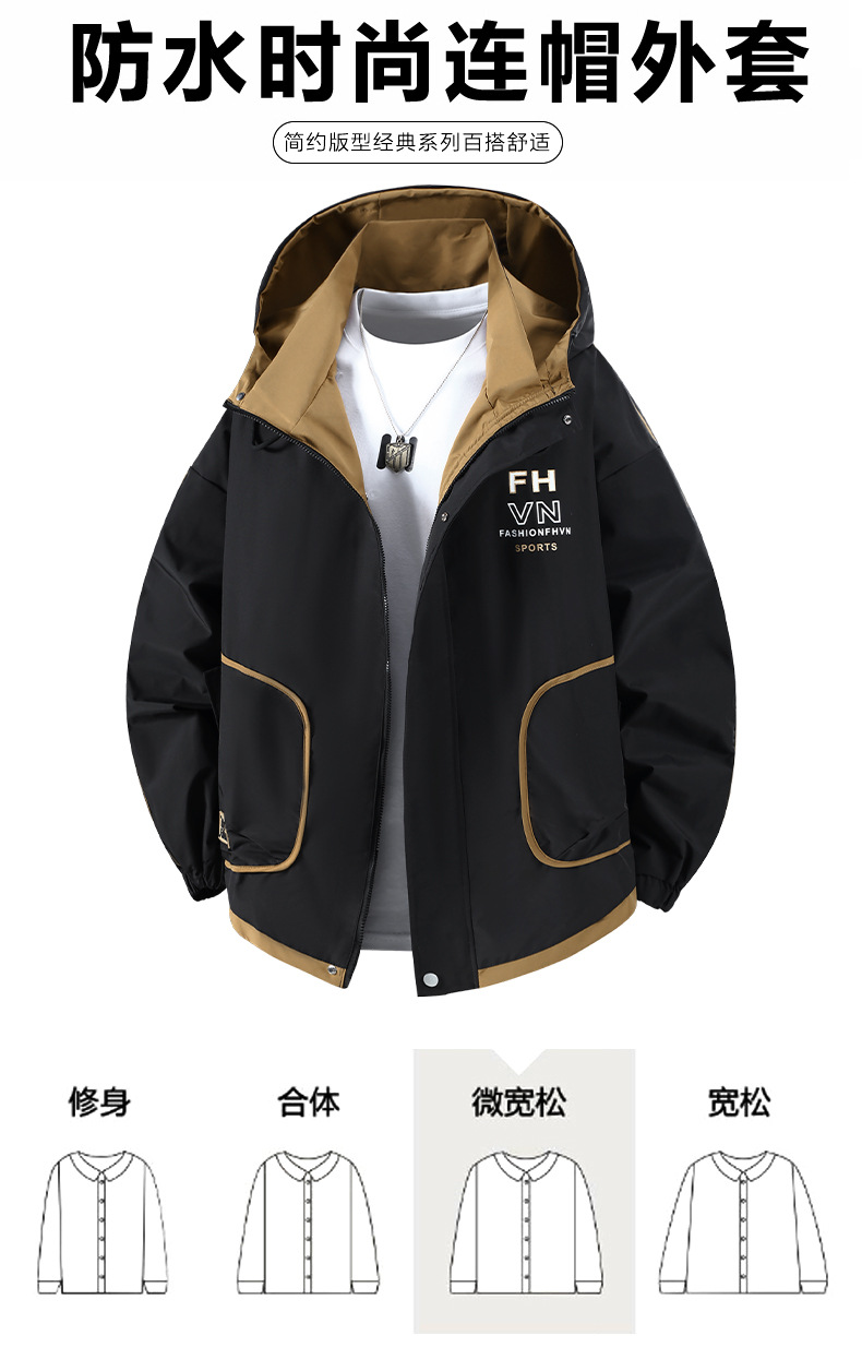 2025新款加肥加大防水户外防风工装外套大码冲锋衣夹克百搭连帽
