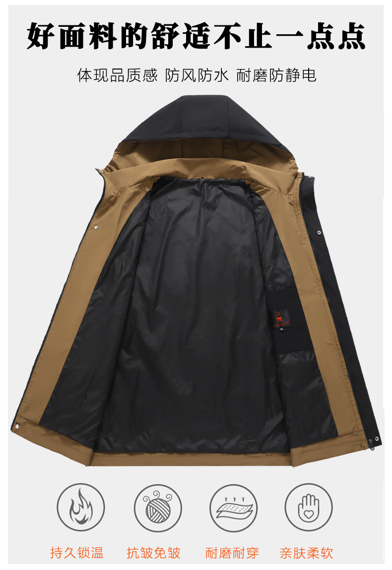 工装连帽工装外套男款2025冬季新款加厚防风冲锋衣男潮牌夹克外套