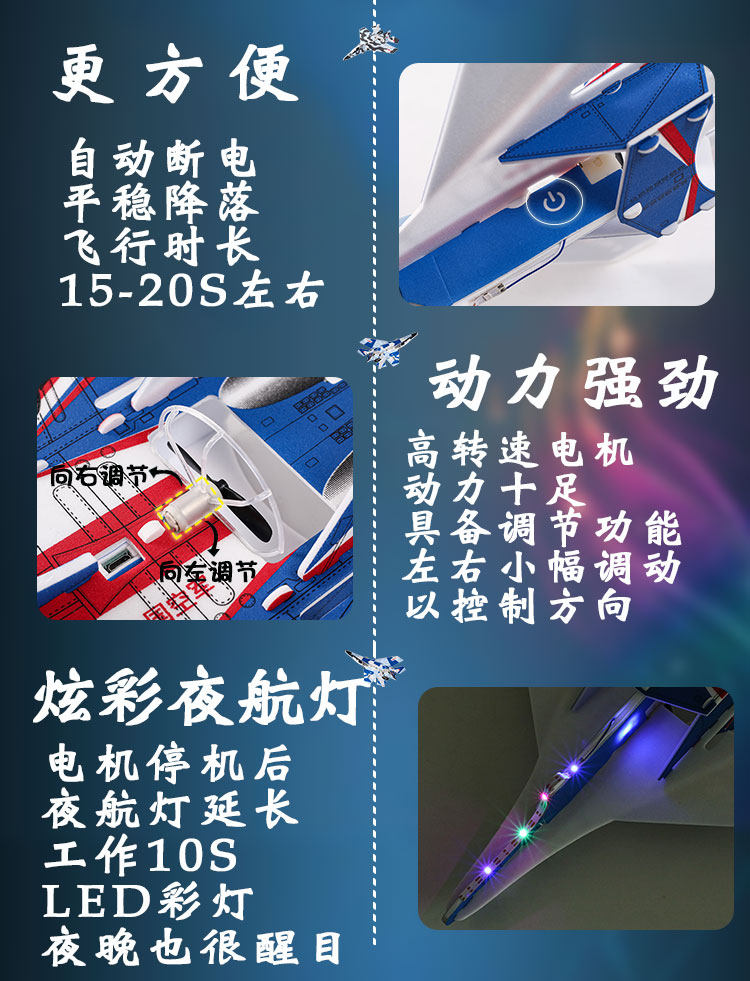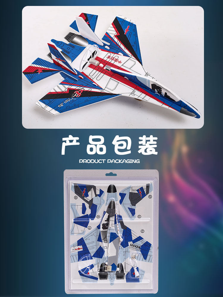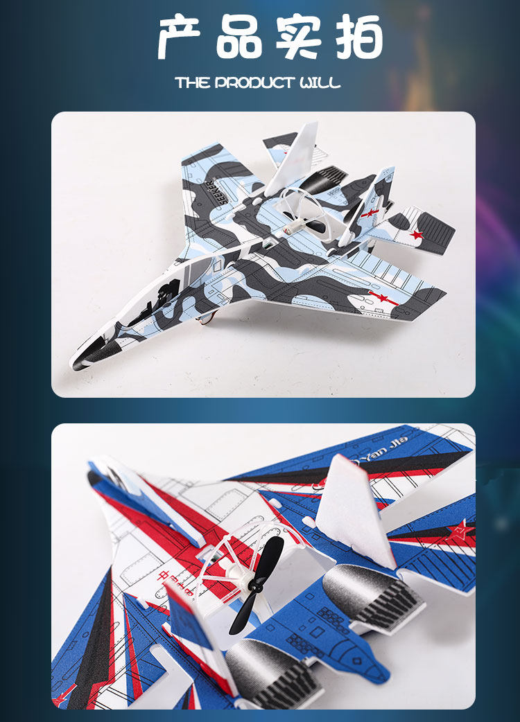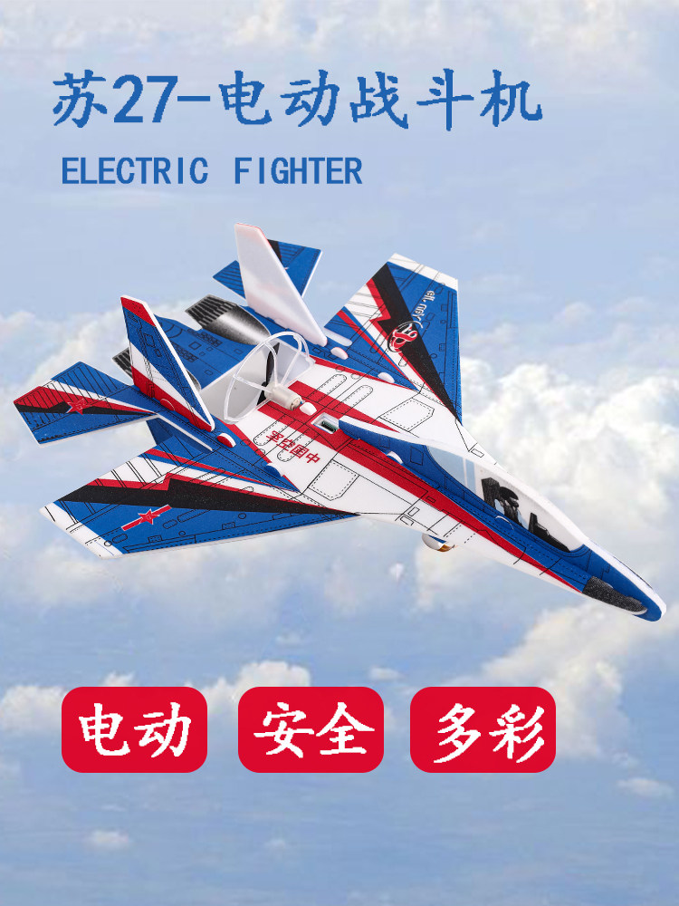 苏35电动手抛飞机电容USB充电耐摔回旋泡沫滑翔机拼装战斗机玩具