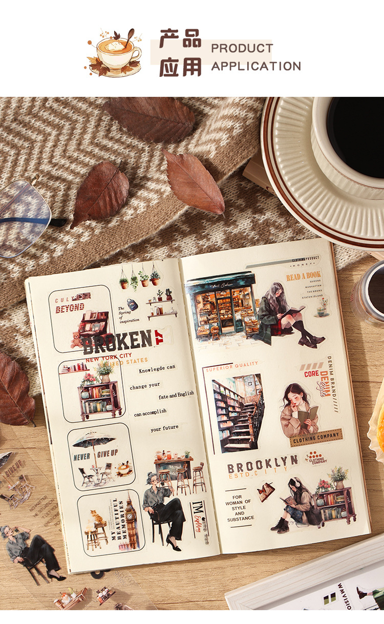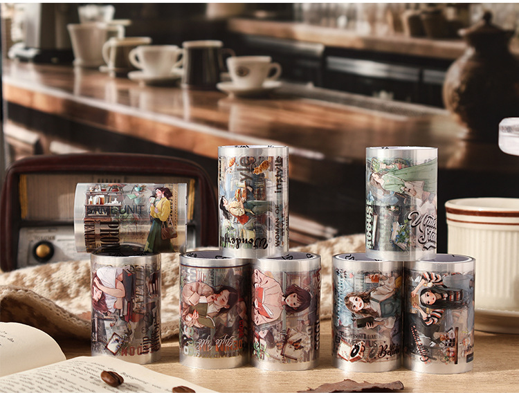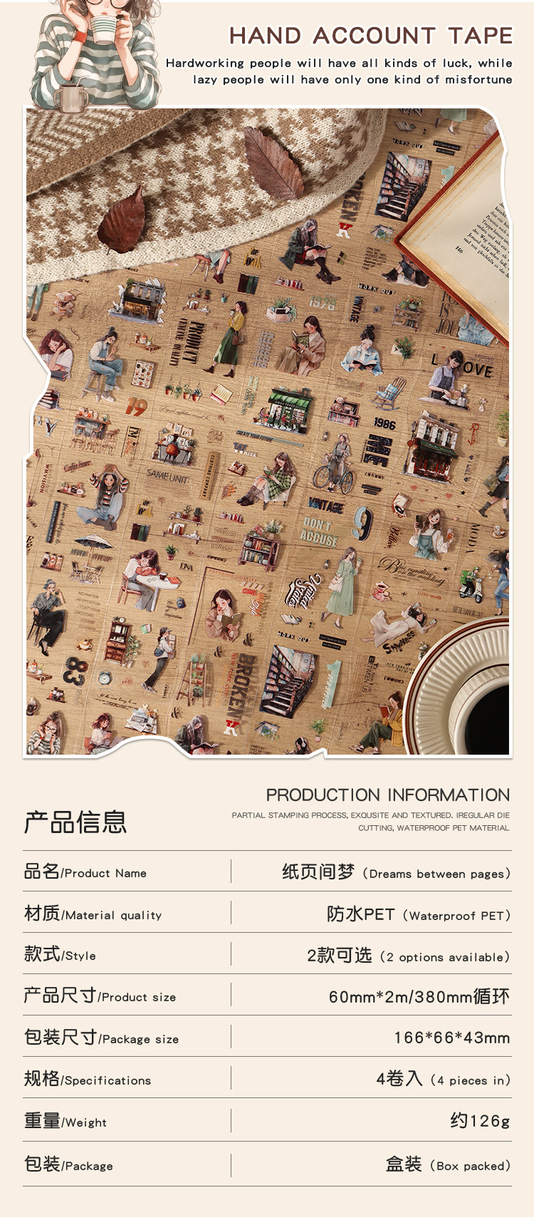 纸页间梦透明pet模切复古人物创意贴纸胶带diy手账素材装饰贴画