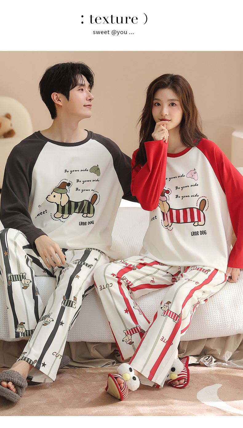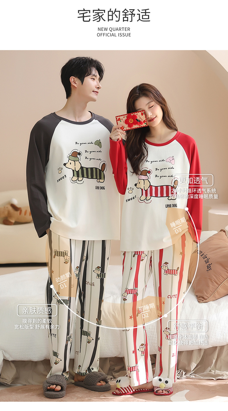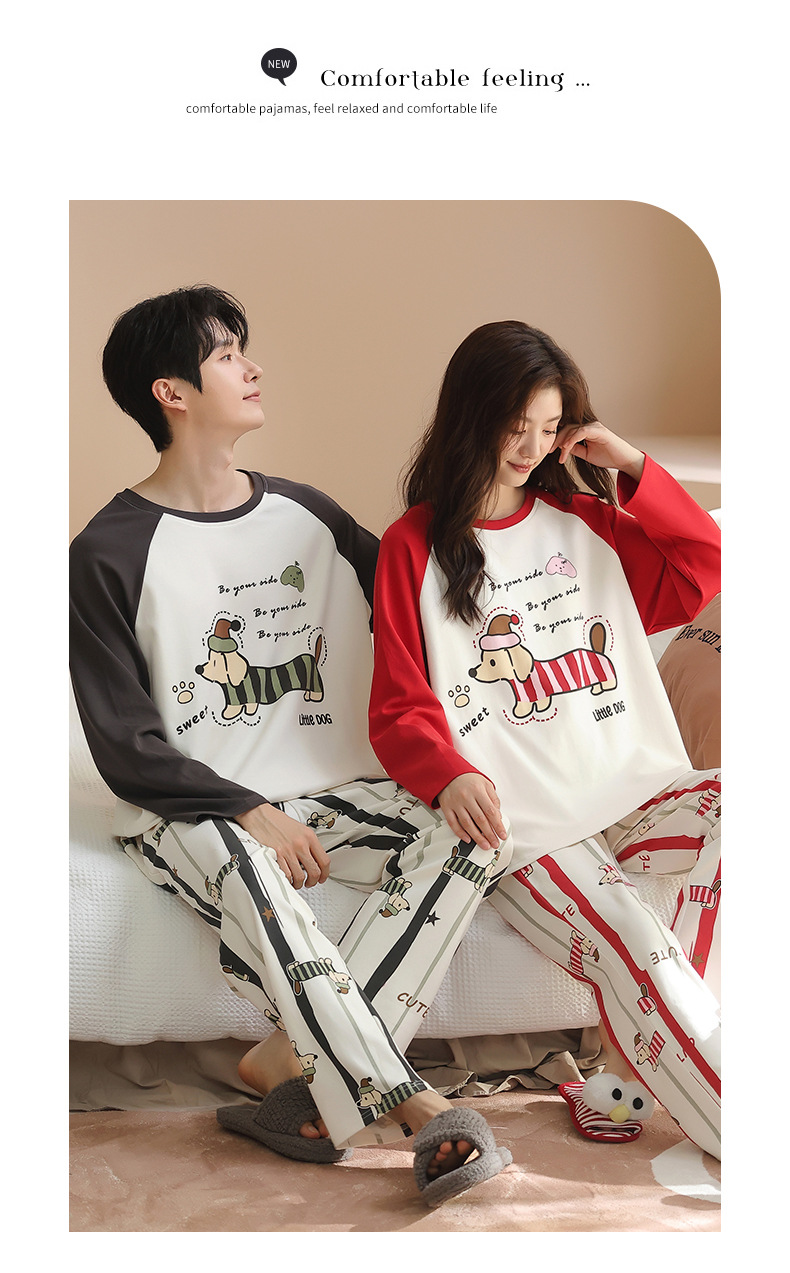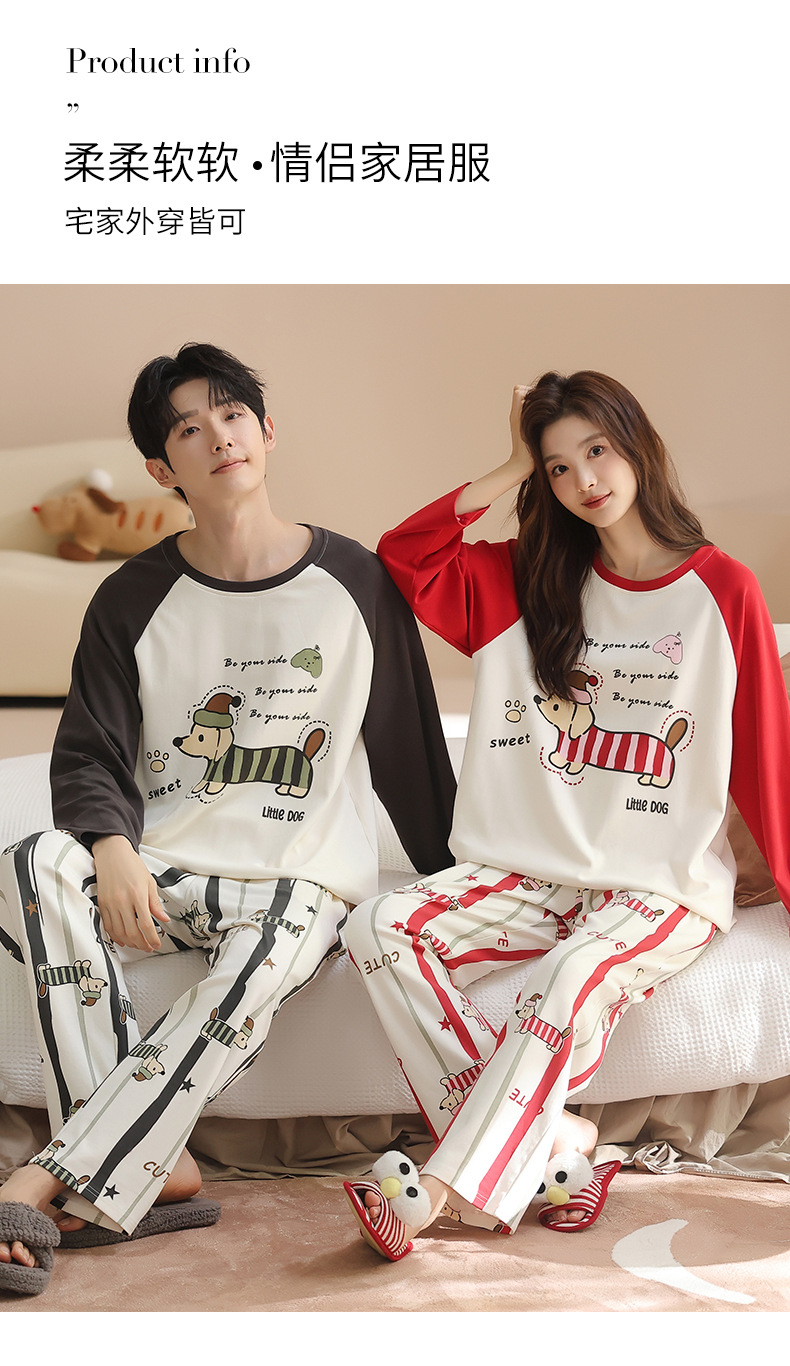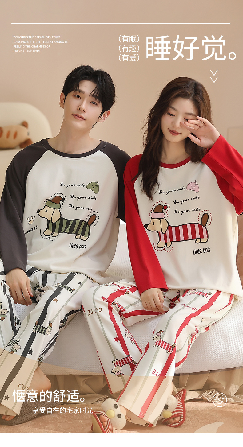 纯棉情侣睡衣女款秋新款长袖家居服可爱卡通小狗可外穿男士套装