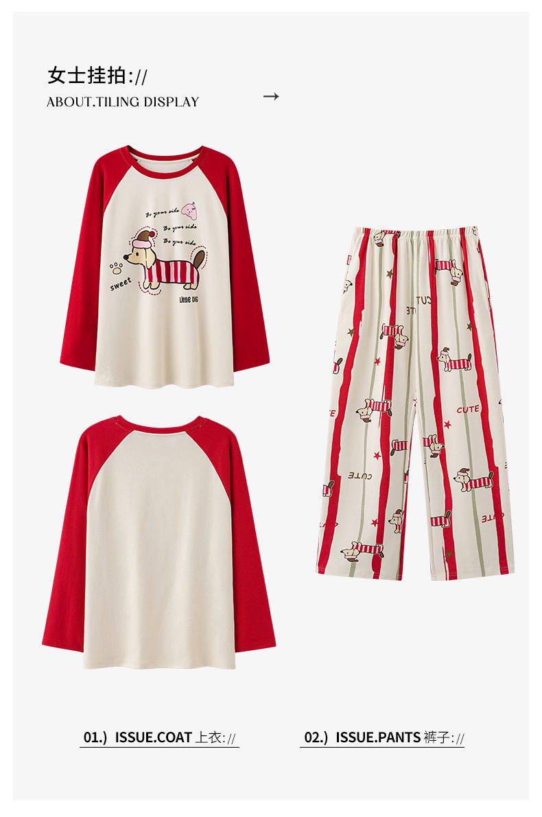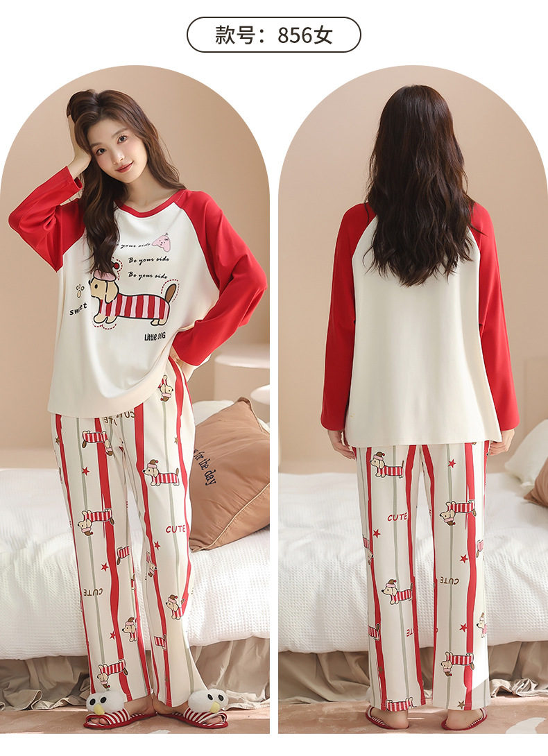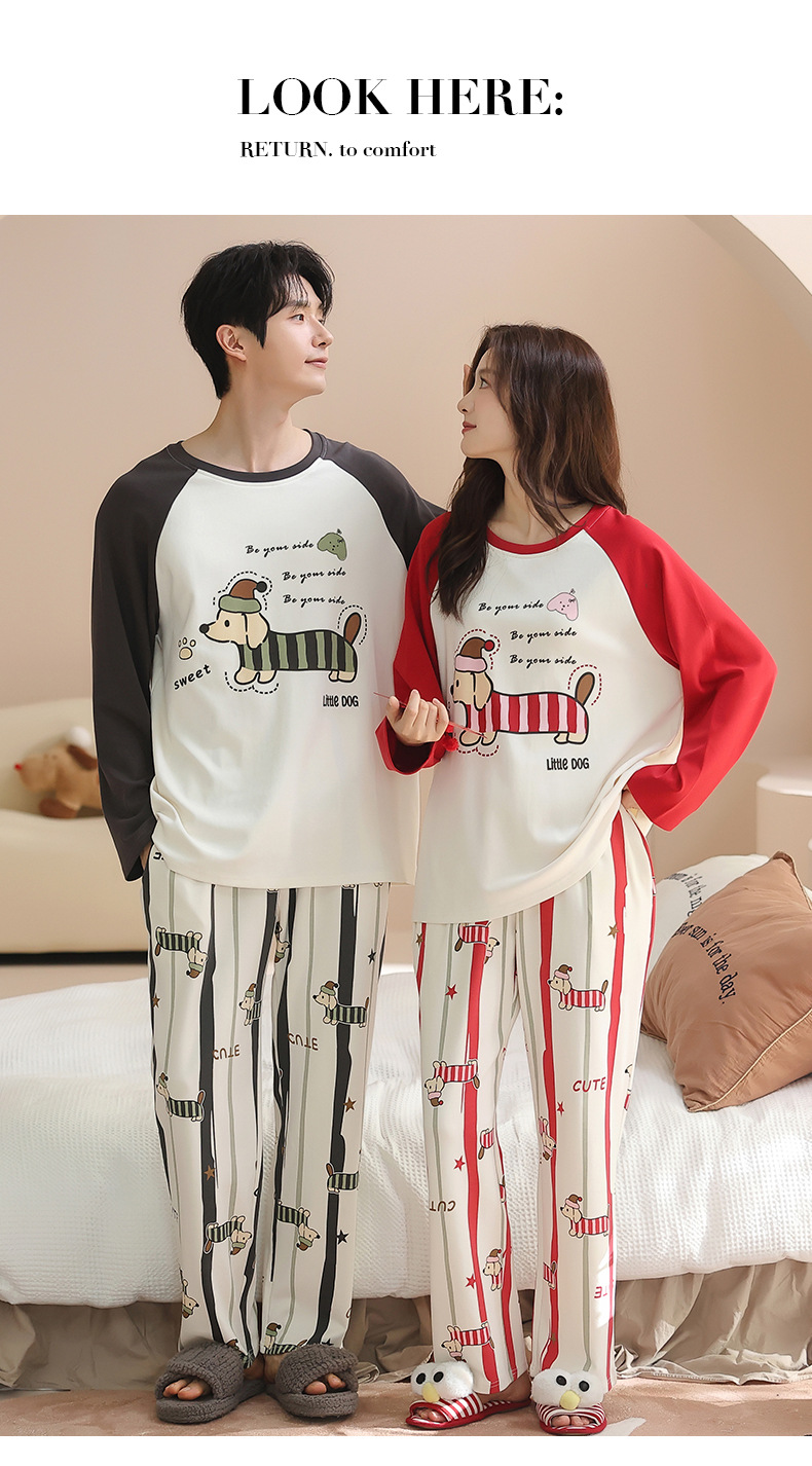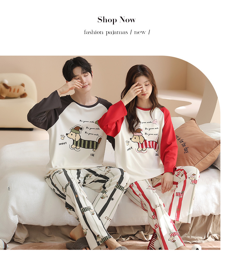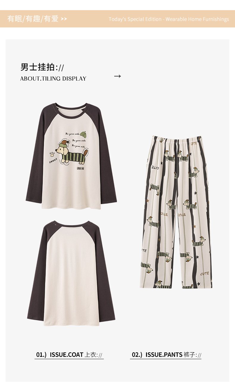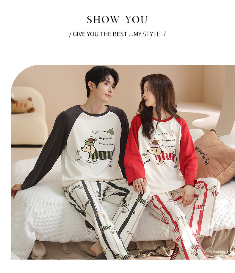 纯棉情侣睡衣女款秋新款长袖家居服可爱卡通小狗可外穿男士套装