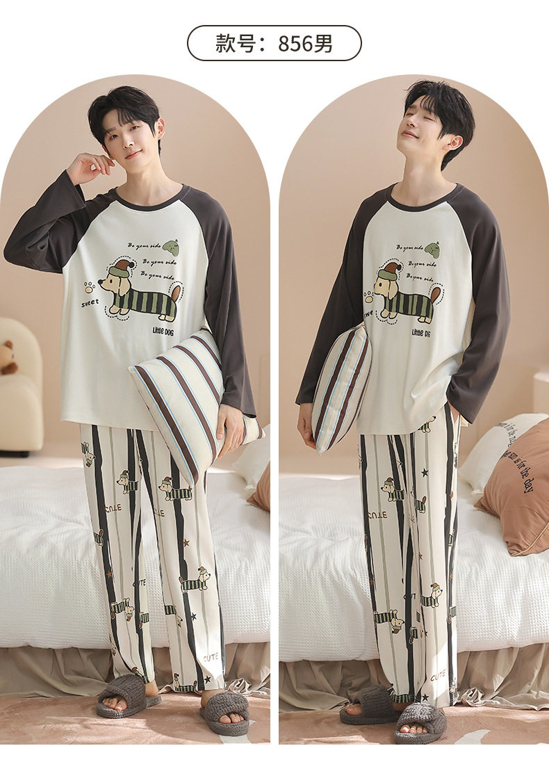 春と秋の純綿カップルパジャマ
