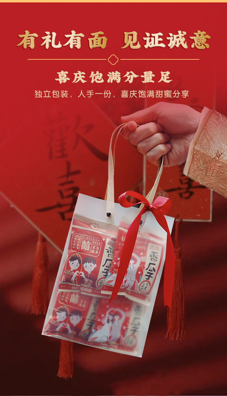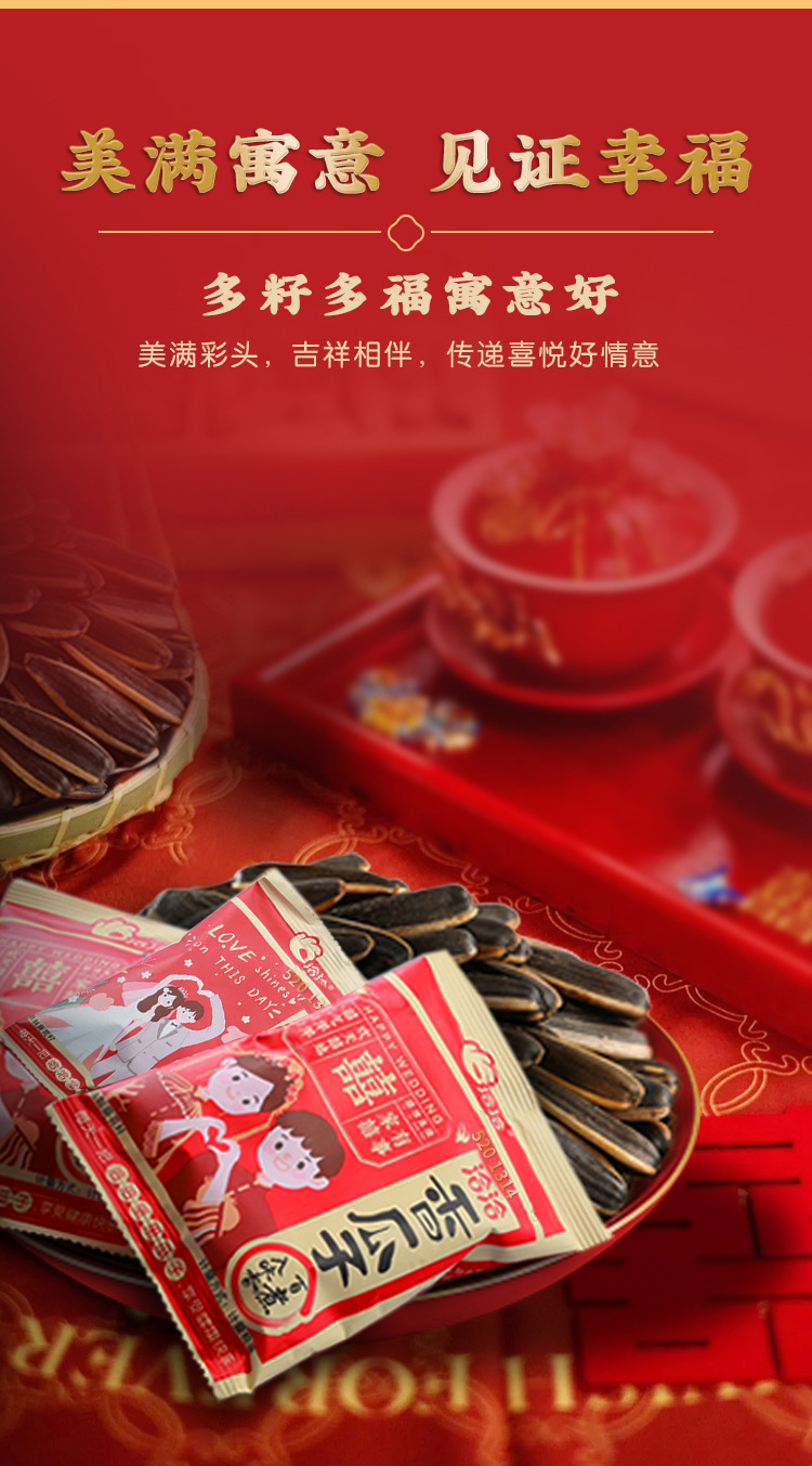 包装规格 香瓜子【22g*10包】双喜包装,香瓜子【22g*20包】双喜包装,香瓜子【22g*40包】双喜包装,香瓜子【22g*60包】双喜包装,香瓜子【5kg整件约220包】双喜包装,喜事花生*500g【约28包】,喜事花生*1000g【约54包】,喜事花生*1500g【约84包】,喜事花生*整件5000g【约280包】