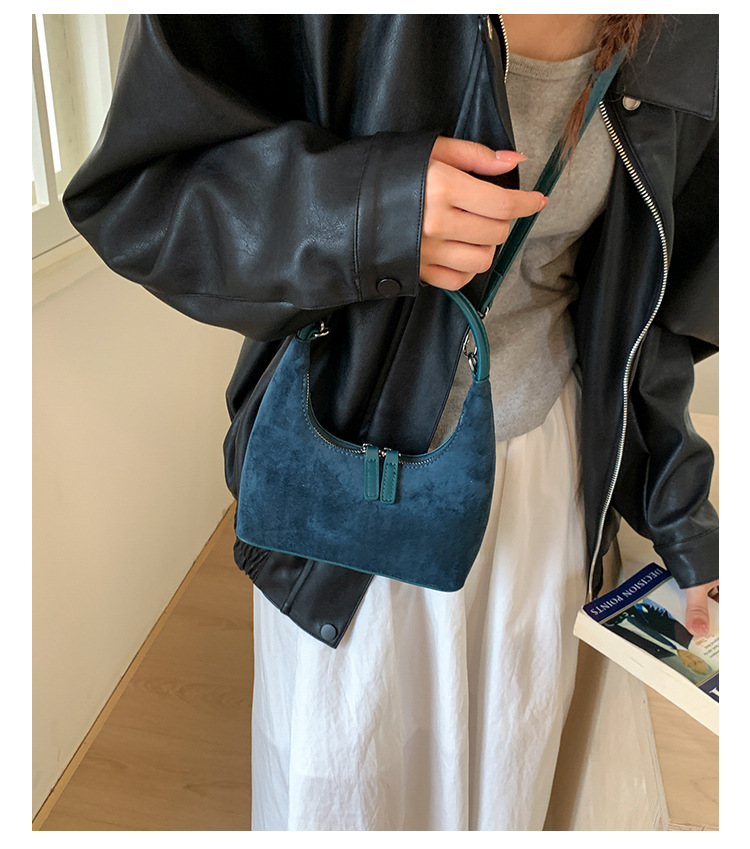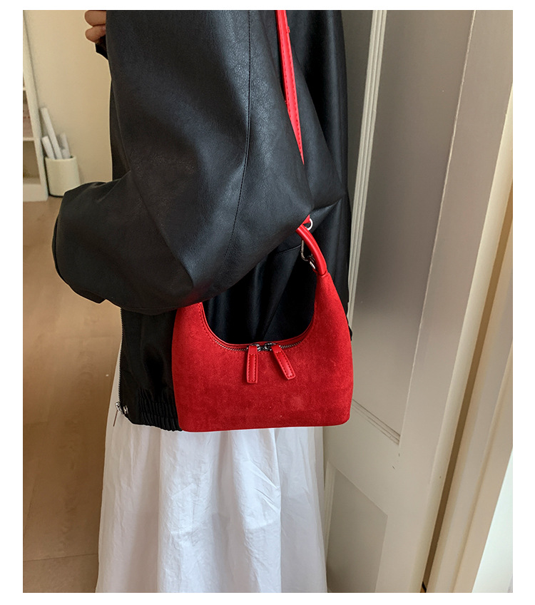 韩系ins麂皮绒枕头包大容量腋下包小众设计复古单肩包通勤饺子包