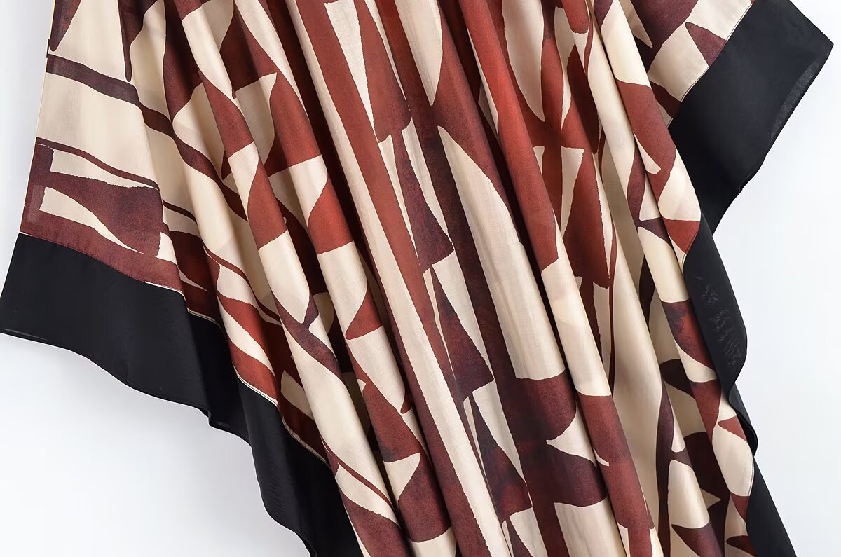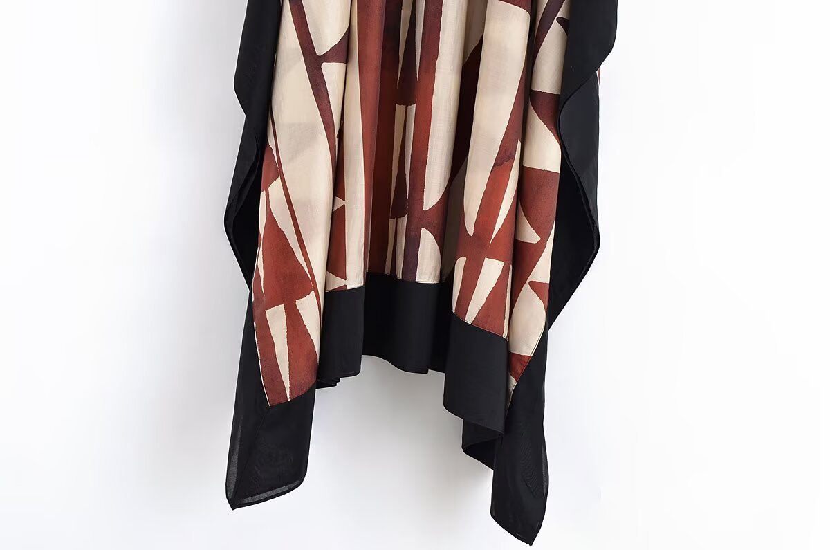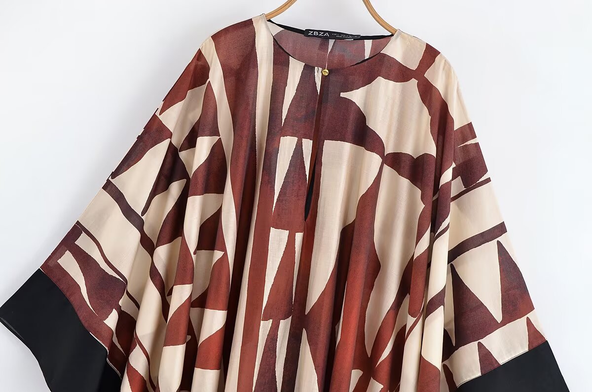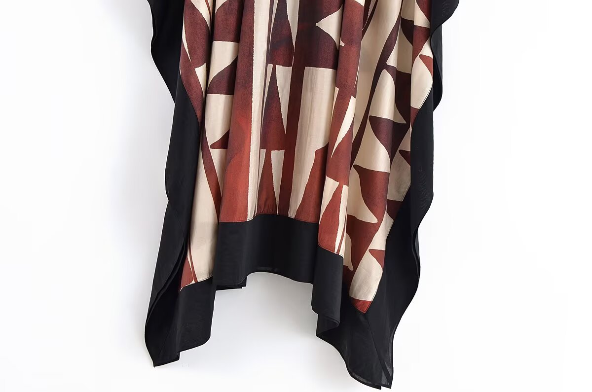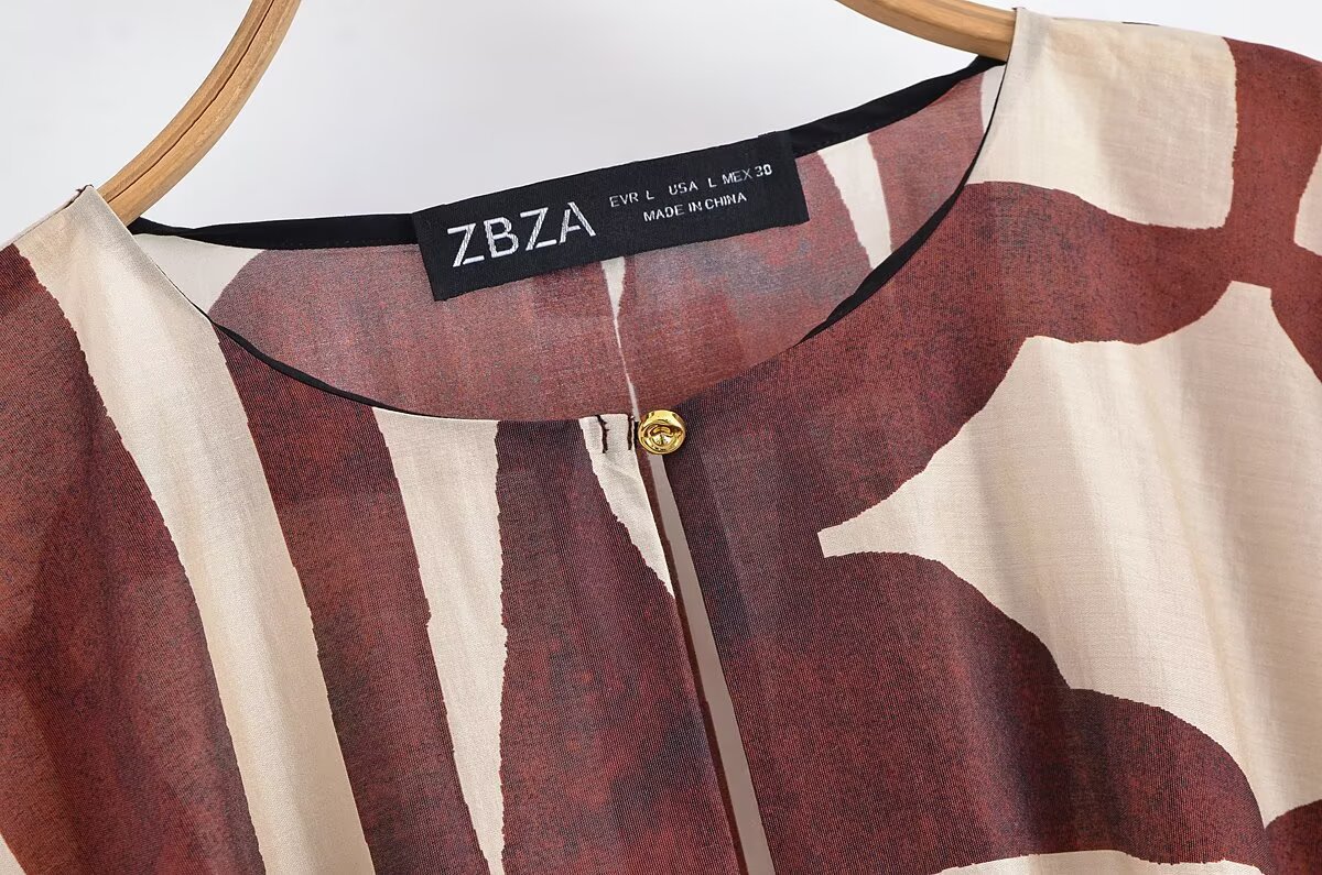 ZR外国貿易卸売り欧米風女装フランスファッション百合気質プリント角襟泡袖ワンピース