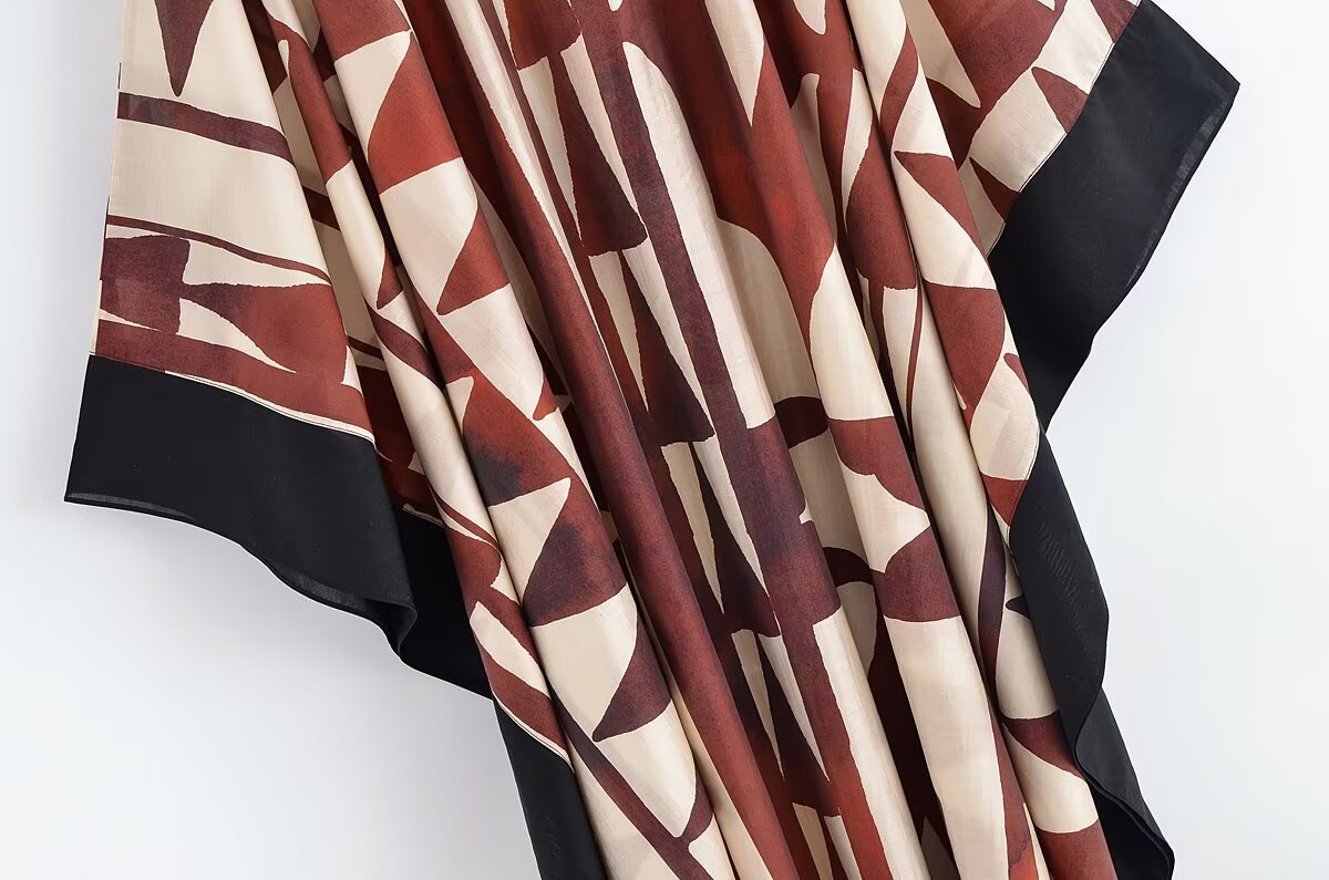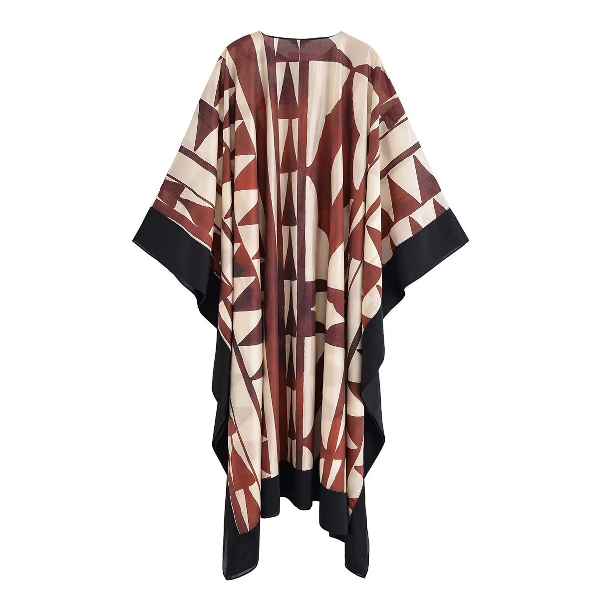 ZR外贸批发 欧美风女装 度假风时尚百搭宽松海洋印花长裙 1291058