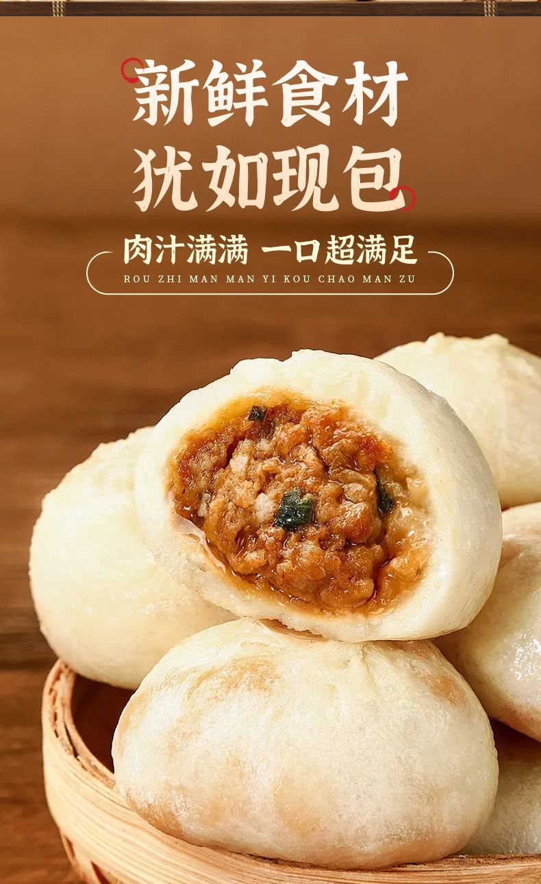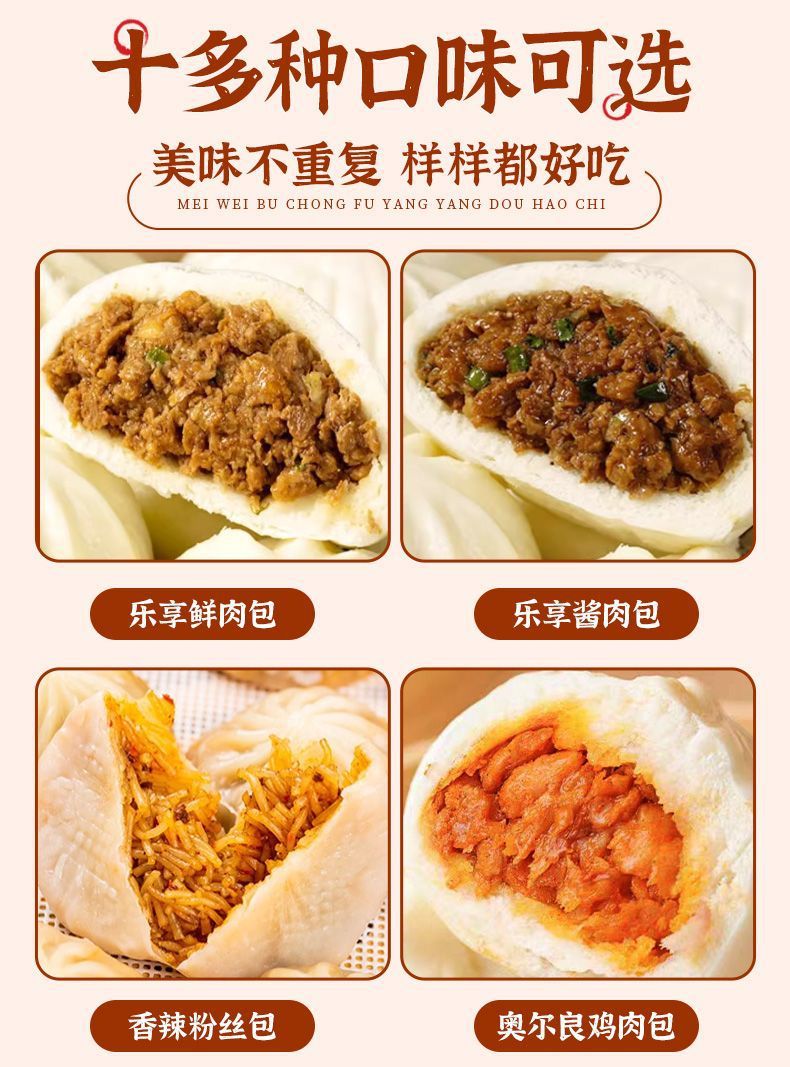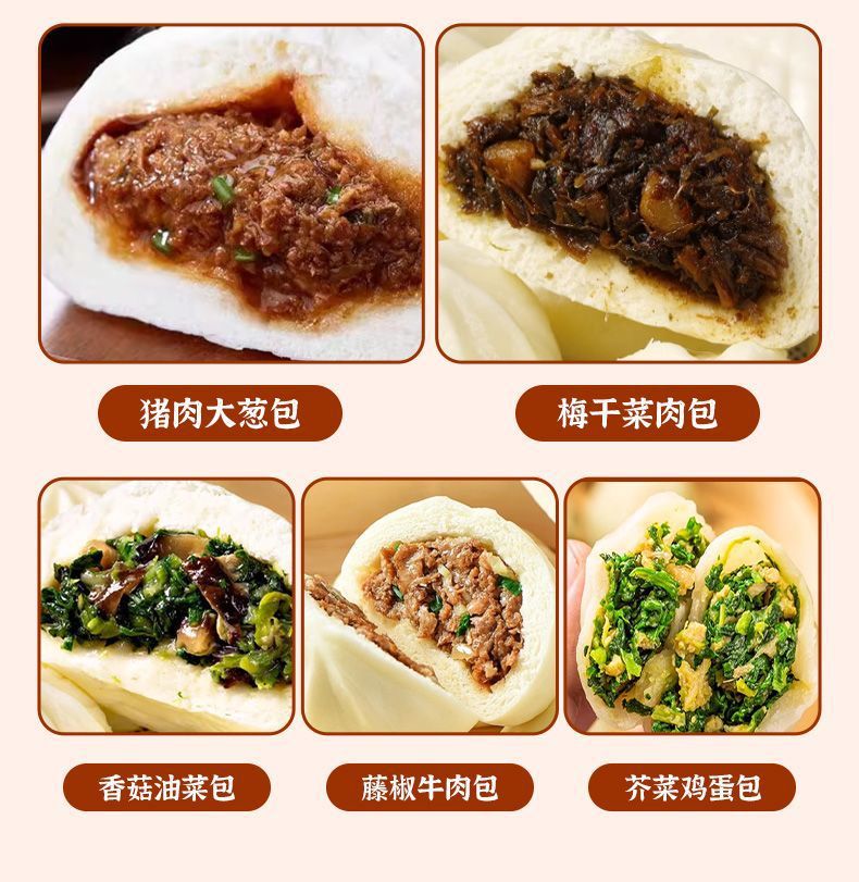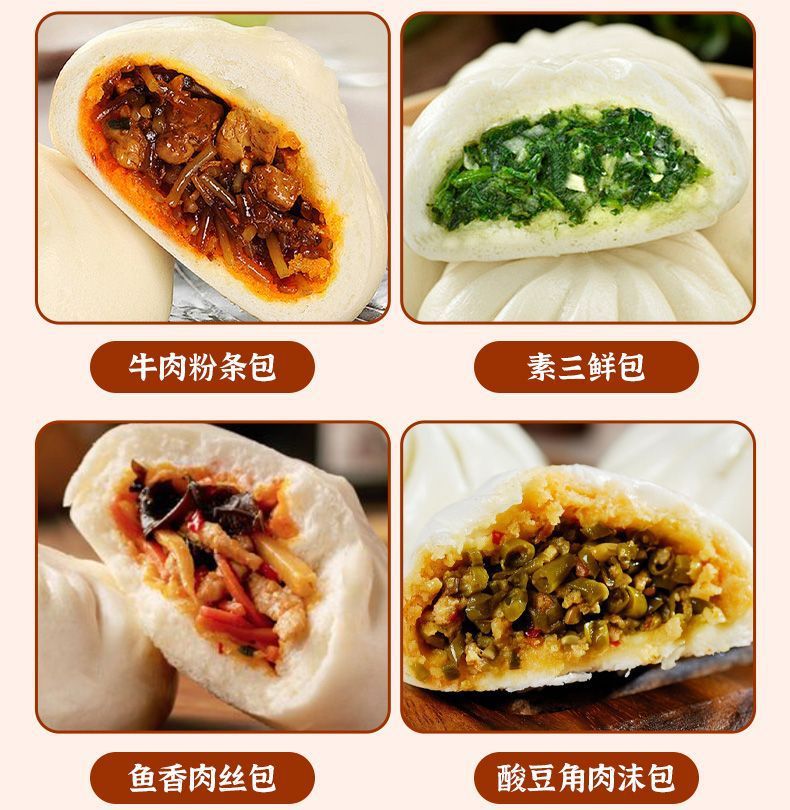 包装规格 奥尔良鸡肉大包子80g*10个*1袋,鲜肉大包子80g*10个*1袋,素三鲜大包子80g*10个*1袋