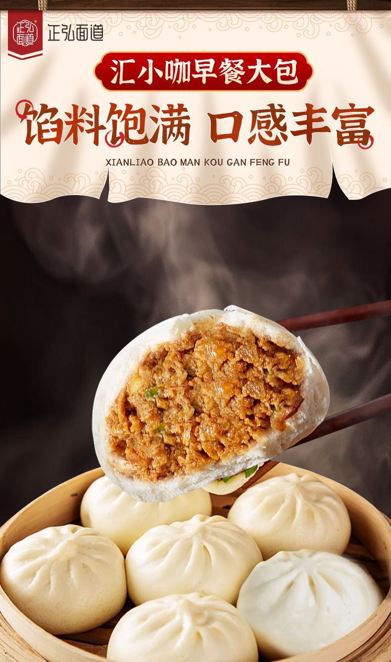 正弘面道鲜肉包酱肉冷冻奥尔良鸡肉包早餐加热即食速食包子半成品