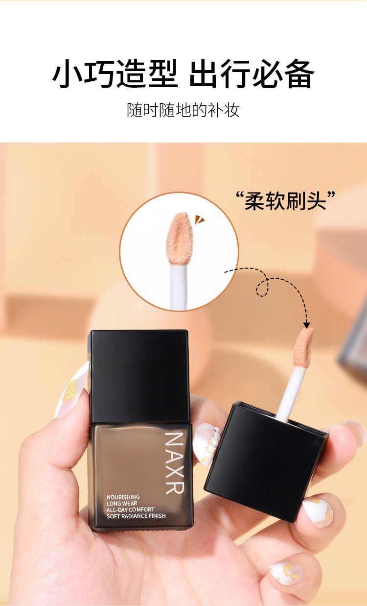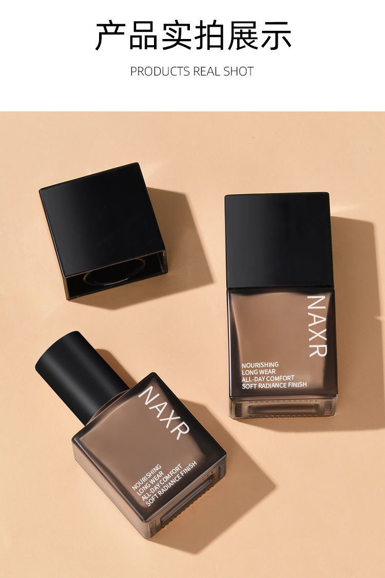 NAXR亮采遮瑕粉底液养肤持妆奶油肌小方瓶防汗防水不脱妆厂家直销