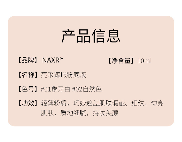 产品名称 NAXR润颜持妆粉底液01#自然色