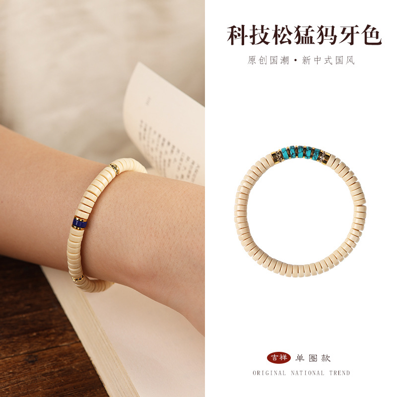 小红薯同款科技松手链禅意猛犸牙色手串复古青金色蓝松色配饰男女