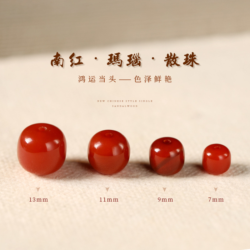 南紅瑪瑙の古い型の珠の復古のdiyの手の串の散珠の本命年の経典の赤い回転の玉の隔珠の部品は承認します。