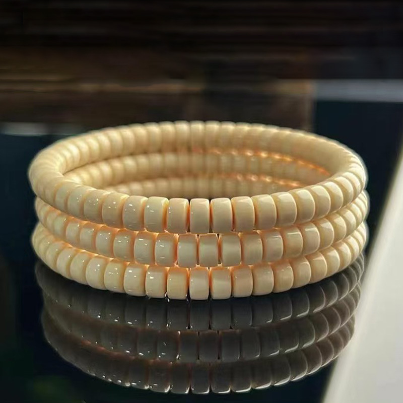 メーカー卸売天然マンモス象牙ブレスレットストレートカット錠剤原色単円ロザリオジュエリーライブソース