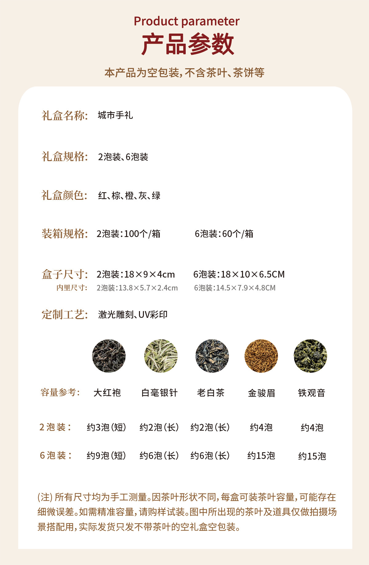 容量 根据礼盒规格