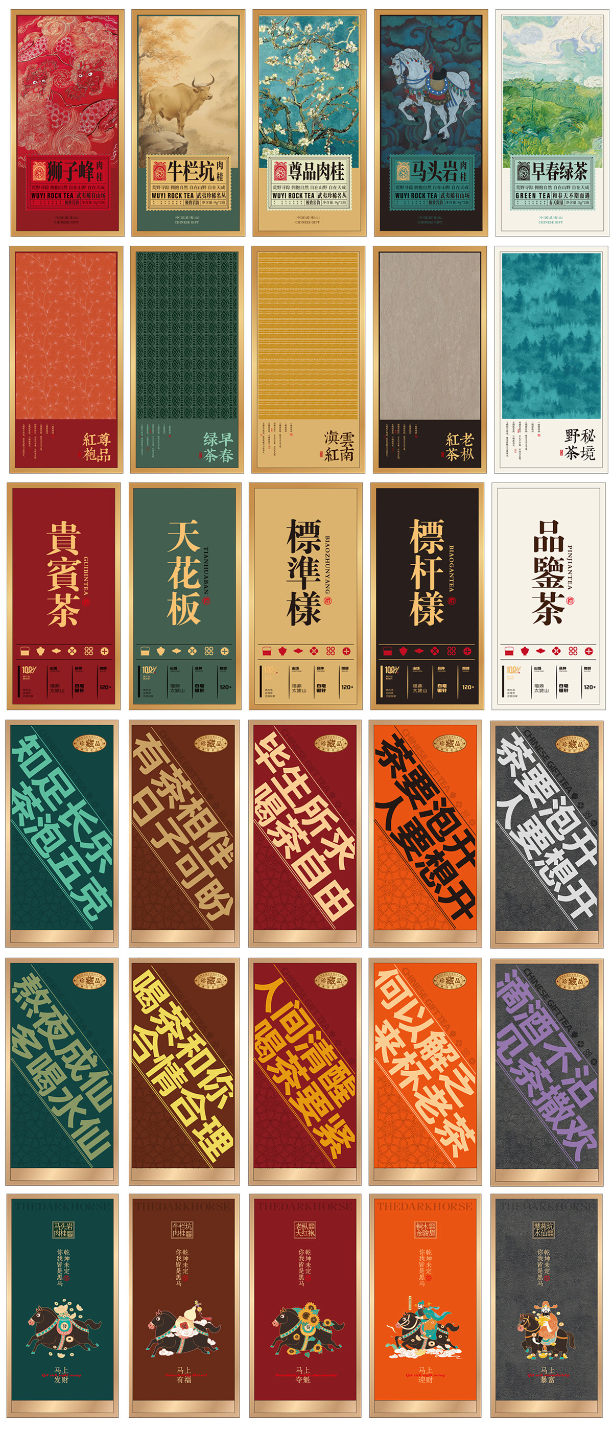 礼盒版面可定制成: 铁观音、大红袍、武夷肉桂、水仙、单丛、金骏眉、正山小种、绿茶、普洱茶、茉莉花茶、滇红茶、野生红茶等